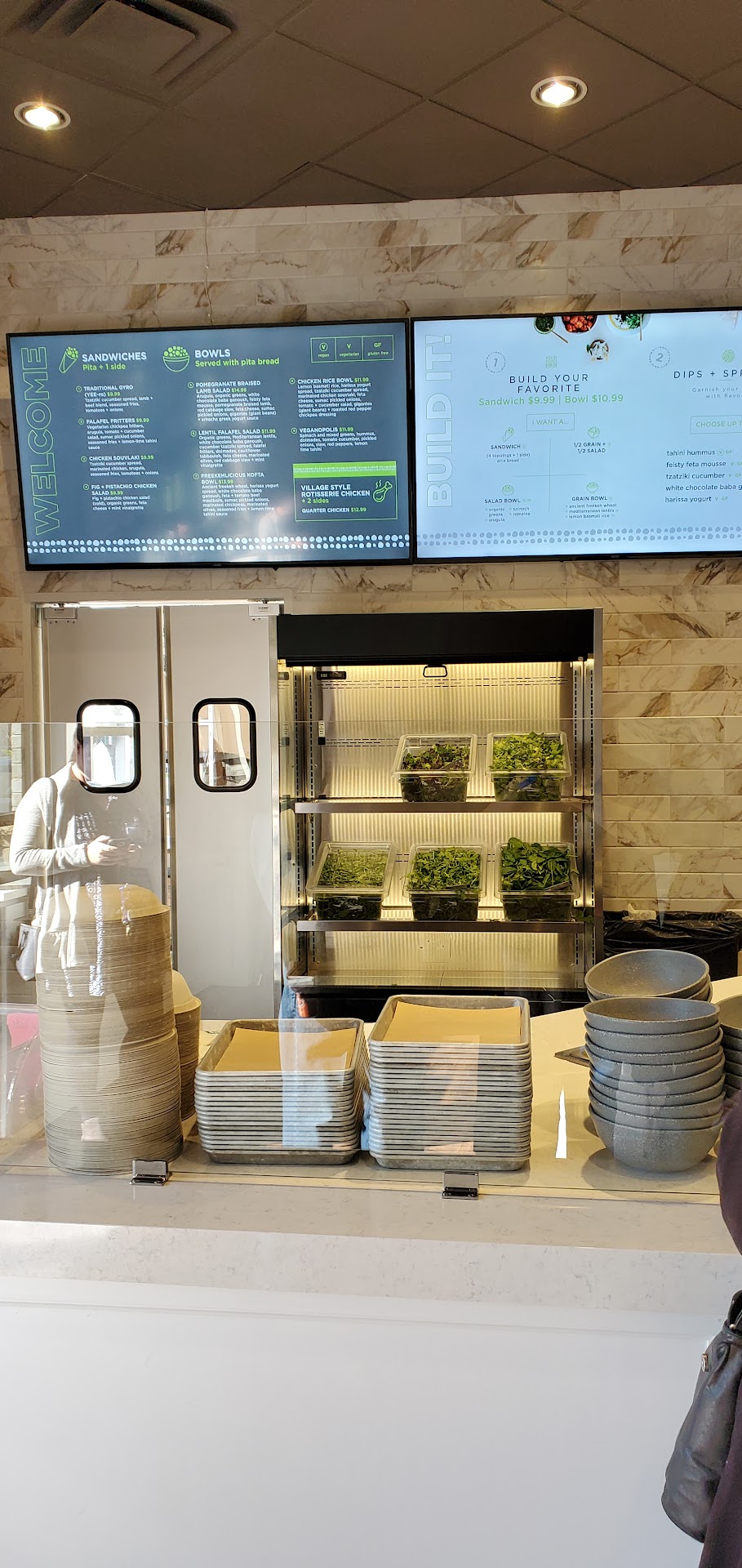 Stepped outside my usual gyro or falafel to try a bowl and I'm so happy I did! Today I opted for the POMEGRANATE BRAISED LAMB SALAD. The person building my bowl was so friendly, helpful, and attentive the moment I walked in to help walk me through the process. I told him how I was pregnant and needed to make some substitutions to the way the bowl was prebuilt and he was wonderful at accommodating. I was then presented with a beautiful, generously portioned bowl of the freshest ingredients to-go. He also included a pita with my meal so I was able to try it as a wrap too! Very pleased with how I could eat so much lamb and not feel weighed down by all the meat. I think the sweetness of pomegranate was a great way to keep it fresh throughout. I'd totally recommend it!