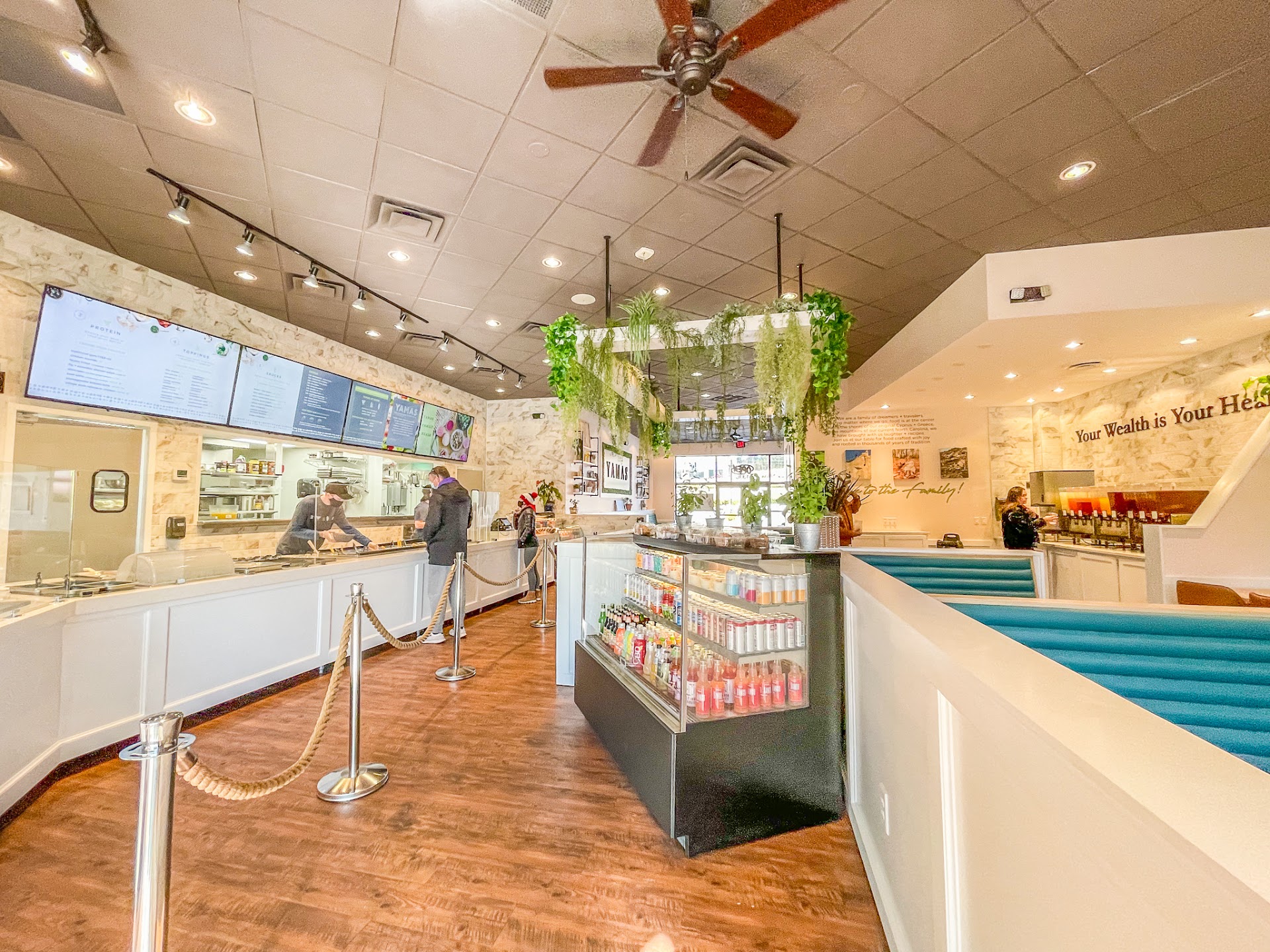 Read moreYamas is so bright, adorably decorated and clean! I mean spotless clean! They have two entrances with ample parking at both doors. They greet everyone warmly when you walk in. My sister had been there last week so she knew what to order but she asked about the fig, pistachio chicken salad and he offered her a tiny sample. She loved it! I tried it and also loved it! I had poured over the online menu and had notes in my phone. My build a bowl had lemon basmati rice as the base, tahini hummus, spicy feta mousse, tzatziki, gyro meat, roasted beet salad, cauliflower tabbouleh, pickled onions, artichoke hearts and the toum garlic cream sauce. Everything is made in house and it shows in the quality of flavors and freshness. I also tried the pomegranate hibiscus tea which I mixed with the unsweetened tea and then for my To Go cup I mixed unsweetened with the chamomile tea. Both were very refreshing. They had several good dessert choices like baklava cheesecake, lemon blueberry cookies, salted caramel crunch cookie, baklava…. My dessert choice was a traditional Greek Sesame Bread Ring called Koulouri. It was a ring of dough, chewy like a pretzel, slightly tart, covered with sesame seeds and an ever so slightly sweet honey glaze. I really liked it. They said it is usually eaten at breakfast with coffee, so I saved some for tomorrow morning. I will definitely be back to this location, it’s in the middle of everything and it was fantastic! I would absolutely reorder everything I chose...