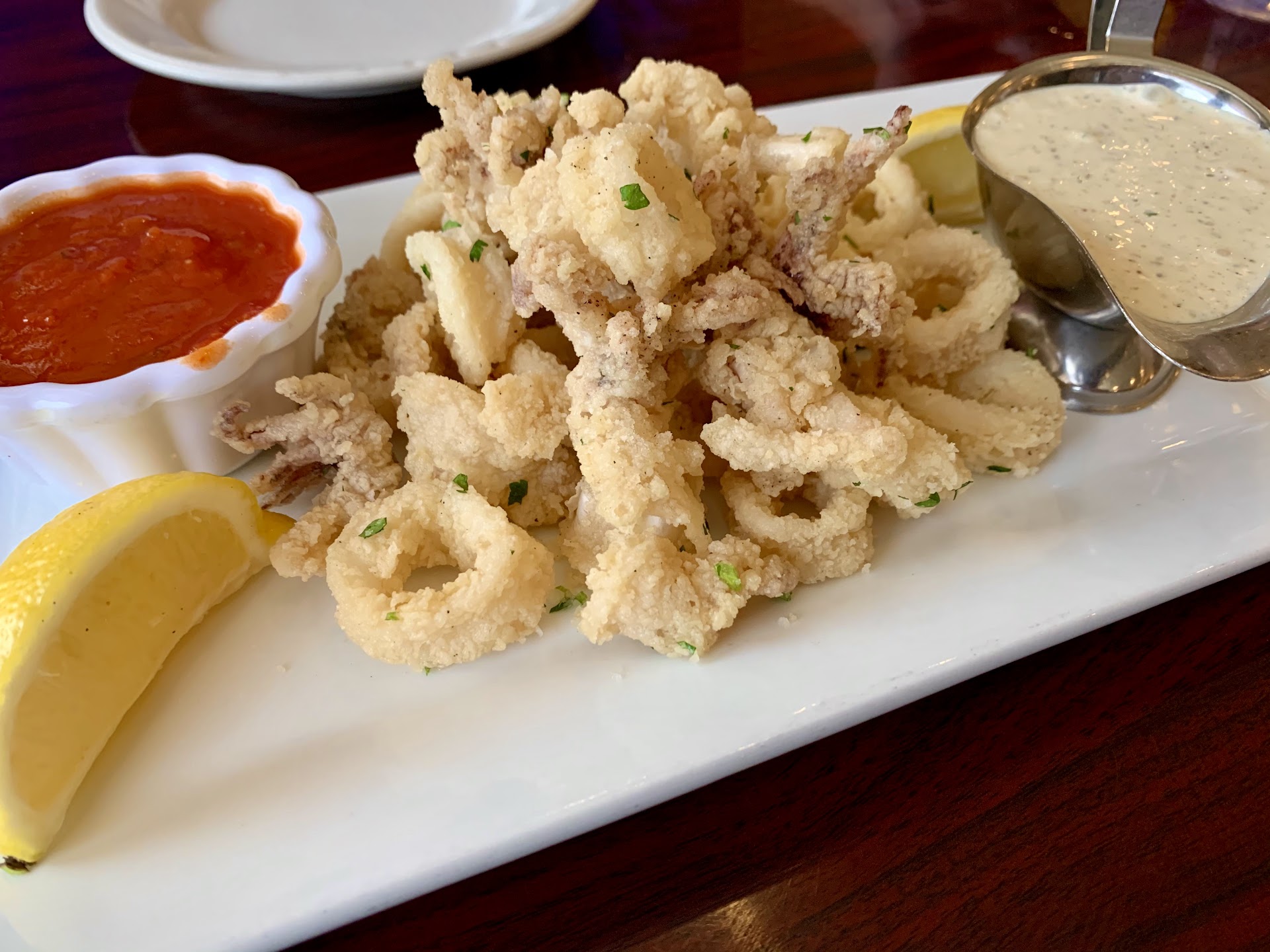 The food was really delicious. First we ordered the Calamari and I have to say it’s one of the best I’ve personally had. Quality seafood perfectly cooked and well drained before plating. I prefer an aioli dipping sauce but it normally only comes with their house marinara (which is great in its own right), the owner was kind enough to make an aioli for me. I wish I could have a bottle of it!
