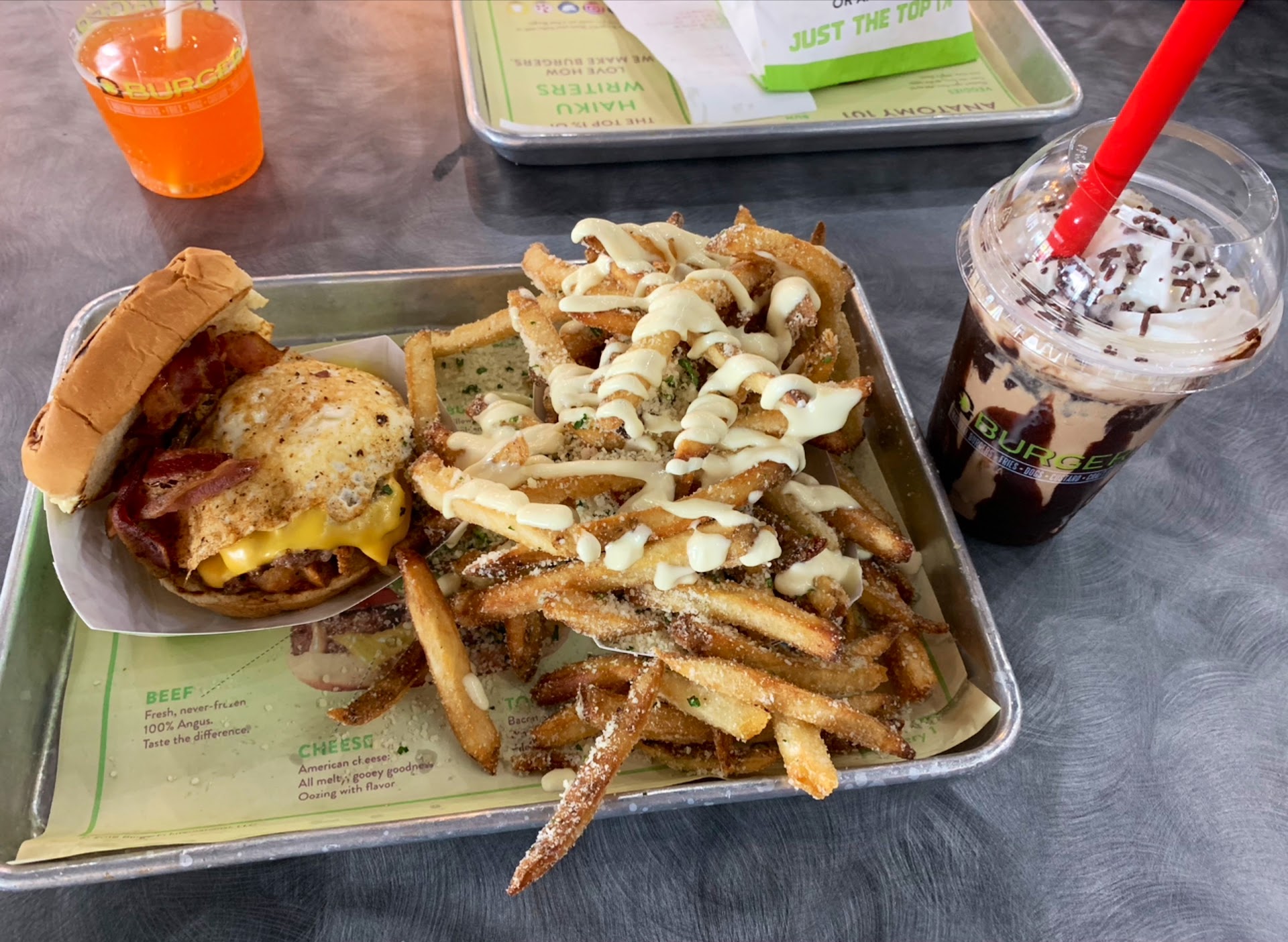 While she called for the manager, two employees came from the back and reviewed the order info on my phone. Meanwhile, my husband placed the order again. One of the employees told the kitchen to begin making the food and I reminded them to make sure it was two burgers, no tomato or lettuce. She said she’d let the kitchen know.