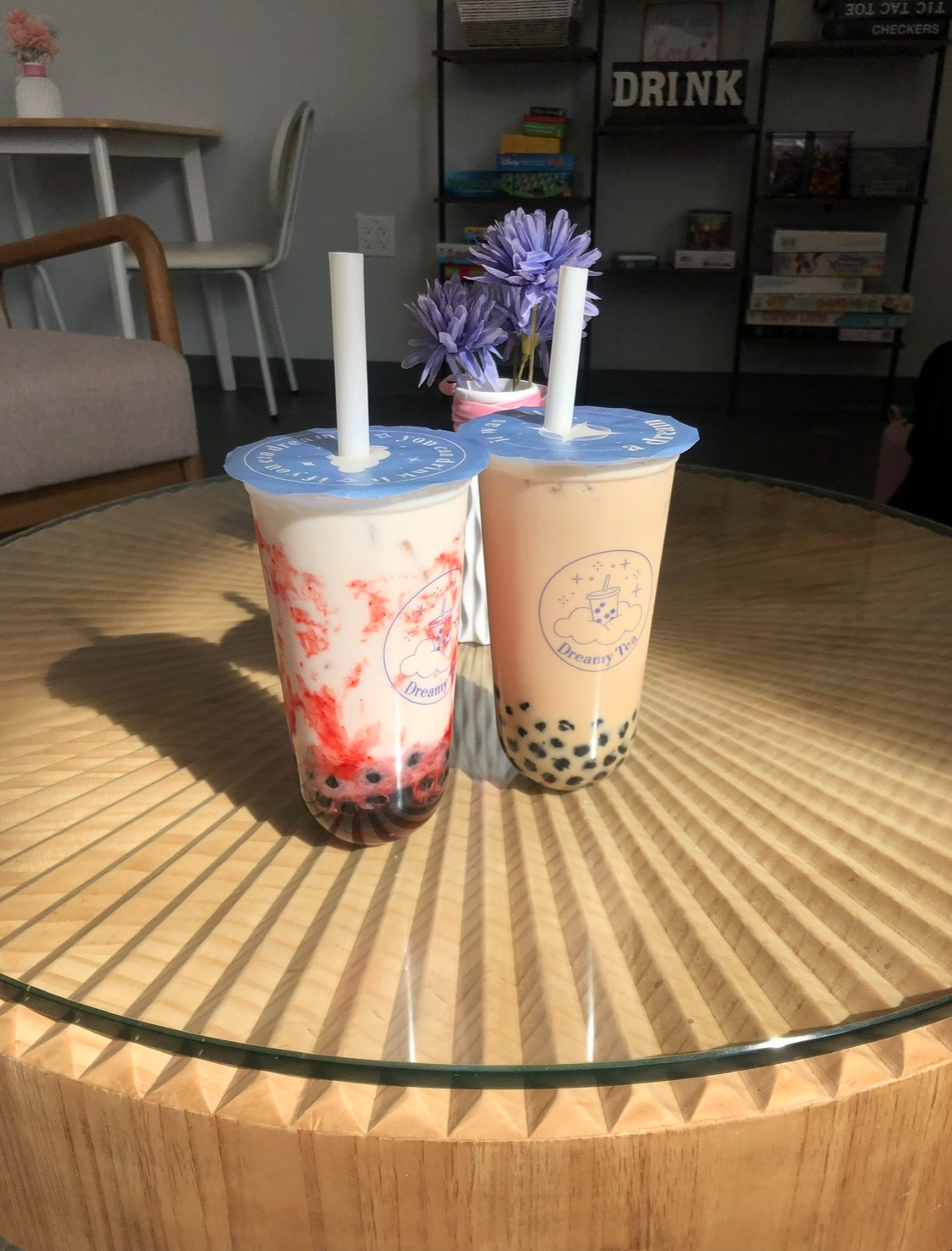 Dreamy Tea is a brand new boba shop with lots to offer! The interior is very cute and inviting, plus they offer a variety of cute boba plushies for $10 each. They have shelves of board games and a wall covered in sticky notes, where each person can write their dreams down and stick them onto the wall. Quiet background music is always filling the restaurant and overall the place has a calm and welcoming vibe. Not only do they serve tea, but they also have a decent variety of pastries available. The only downside is that they don't accept cash as of right now. When it comes to their drinks, they certainly live up to the name "Dreamy Tea" with their drink menu. They offer a variety of drinks with creative names and unique blends of flavors. One that stood out to us was the "Cupid's Cup", which was a milk tea that included strawberry puree and pieces of fresh strawberries inside. If you are a fan of strawberry-flavored drinks, you will love this one. Even if you prefer traditional milk tea over other drinks, you don't need to worry because their black milk tea is addicting! On weekends, they even offer limited time special drinks or deals. The staff there is also very nice and patient, and once, one of them offered us an extra drink that they...