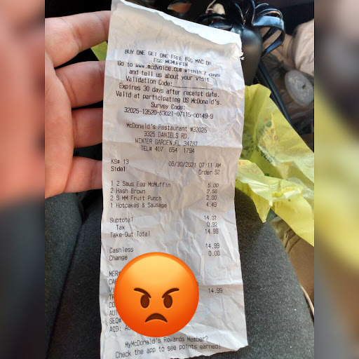 Read moreWent through drive thru today and ordered pretty big order, as normal with a big family. We frequent this establishment often and up until today have had decent service. After driving off, checked our food and realizing we were short 2 large fries (approximately $1.90 per), we drove back around. When arriving back in the drive thru, we had to wait back in line, which was busy due to the lunch rush. When finally making it to the 2nd window, I explained our order was short 2 large fries. At first everyone was confused and repeatedly stated they provided us 2 large fries however, the total should have been 4. After the staff couldn't figure it out, the so-called manager came to the window and I repeated my order to her as well and explained the situation of being short 2 large fries. She explained that they did not charge me for the fries (which I could not verify due to not accepting the receipt as the staff was not wearing any gloves during the COVID outbreak) even though I stated that I had order the additional fries. At this point I stated that since it was their mistake and the fact that my other food at this point was getting cold it should be compensated. She refused to do so as she stated since they didn't charge me they were not going to provide the fries but would if they could charge me. I guess there is no "customers always right" at this facility. More importantly, they have lost a loyal customer over a measly $4.00. Instead of turning left, I will now turn right and go to a competitor MCD that is the exact same distance...