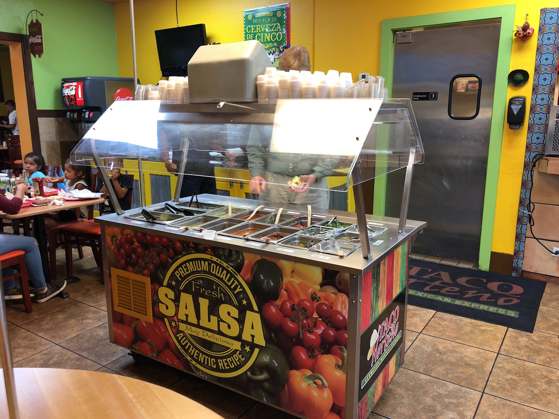 This next fact is a hugh "win", remember when I said "one tortilla" at the beginning? Normally, one tortilla would break apart or wouldn't hold enough and I would end up asking for extra tortillas. NOT TODAY!!! their one tortilla held its own. It didn't fall apart and it held all the meats plus the toppings... Wait!!! (excitement building up....) ... all the toppings you could imagine on a taco were on a full salsa bar!! I can't name all the toppings and sauces bc it was a LOT!!! Even roasted peppers and onions!!!