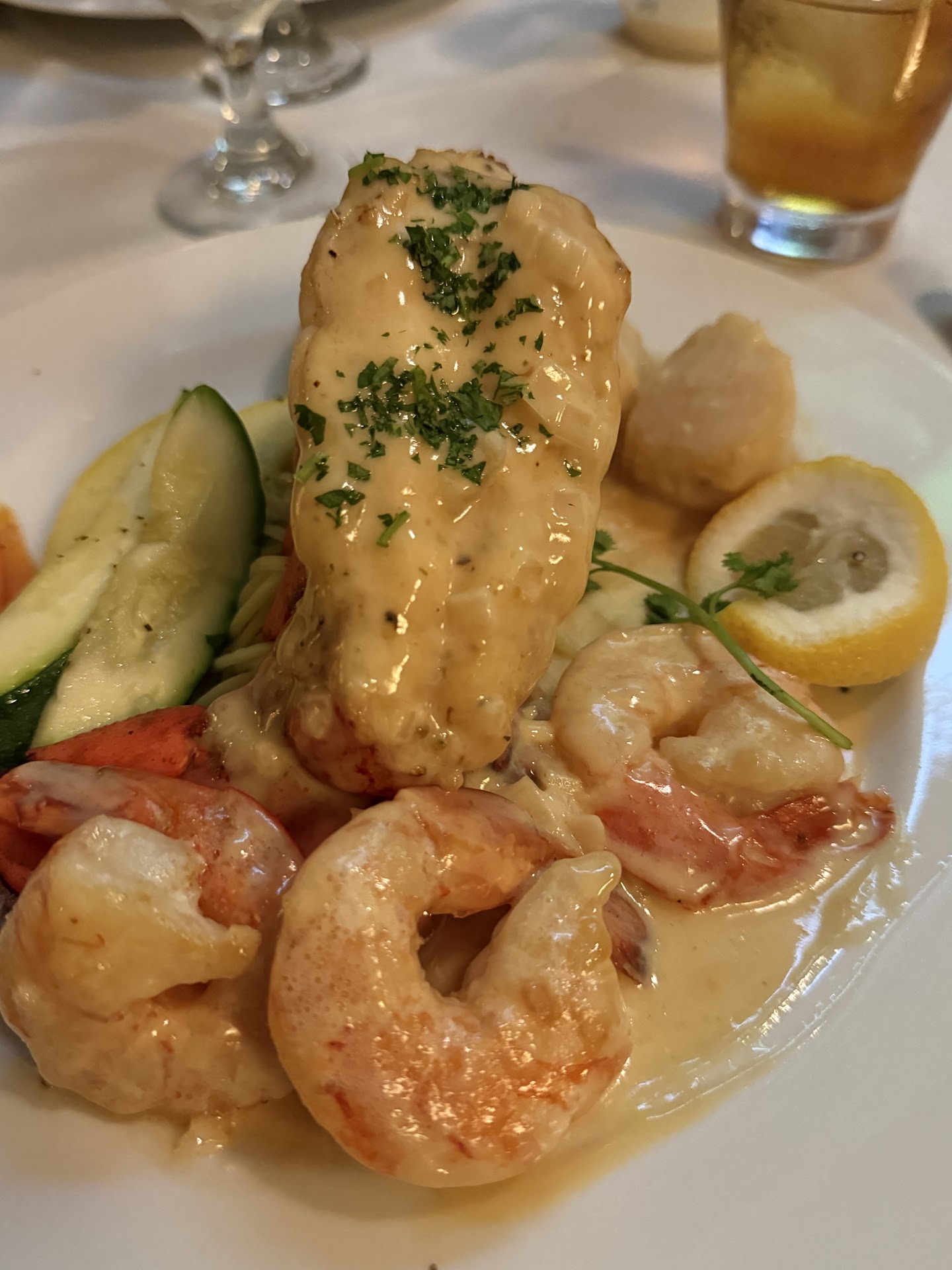 I/we are not people with high expectations but what we had heard as to the quality and taste of the food, versus what we were all served, most of us were disappointed. I will say the salad and sorbet were both delicious but the entrees were lacking what many had eaten on their prior trips and were below our expectations.