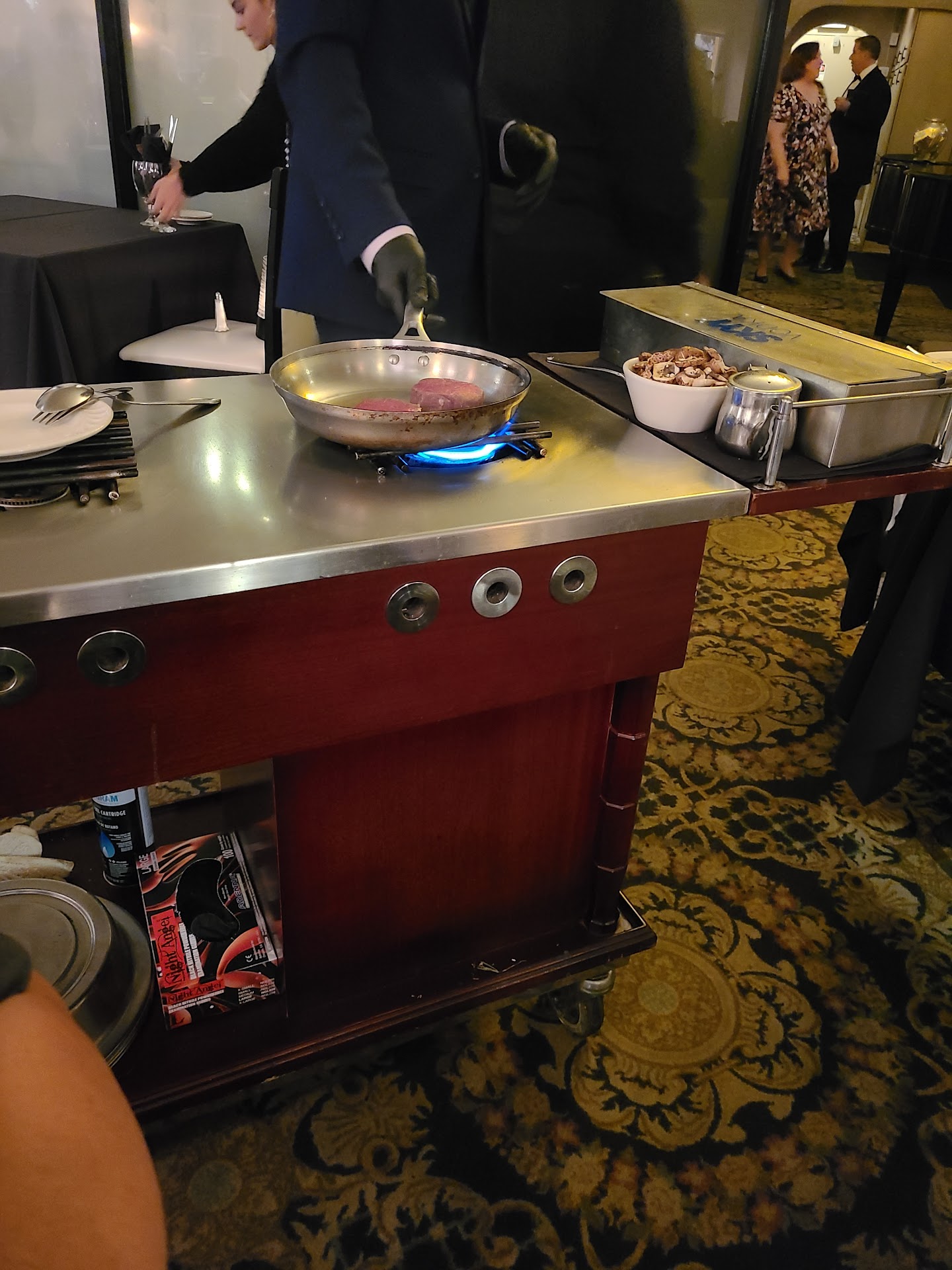 Bananas Foster was served tableside and the man who was making the dish was clearly annoyed that he was having to do so. He didn't speak to us once, didn't make eye contact, and was angrily throwing ingredients and dishes around.