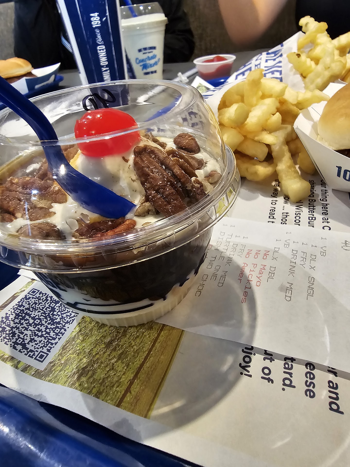 Read moreI must say its the first time I had to go back to a review I left a while that was top notch and scale it back to this.... if there is one thing I hate is complaining or asking to fix and order but the last 4 times I have been here through drive through its always something. The concretes always come under portioned not full like it used to and why offer toppings if at the time of ordering are barely in the cup? I asked for vanilla concrete, chocolate syrup and salted caramel with pecans, I was given a vanilla concrete with 5 pecans in it a smear of a drop of chocolate i have to find and a string of caramel on top of the concrete. One of the times was even questioned by one of the kids when I went in to complain because why this keeps happening. The kid dared to say and questioned if I ate from it before coming which I didn't and after a back and forward a manager stepped in and fixed it properly. To end this time I try to asked them the difference and they just pointed at one and said have a nice day. No receipt no actual concern for the order being wrong just trying to get you out the way after paying. They say 3rd time is the charm.... well I gave 4 before dedication g time to even doing this but the frustration is insane knowing how expensive the food is from here. People expect what they pay for and to be shorted and treated like "keep it moving" is the new culvers...