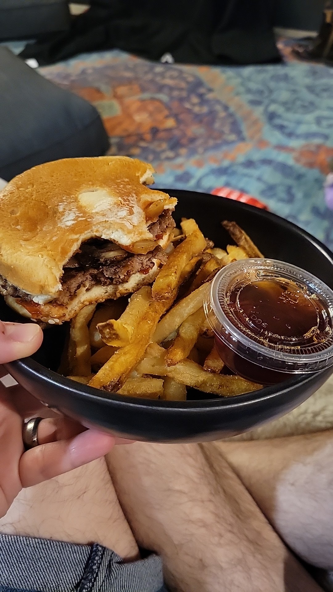 One more thing: there is saying that says: "if you see an employee of a restaurant eating in the place, the food is good" well, there you have a picture of beautiful employee taking his Five Guys 🍔...