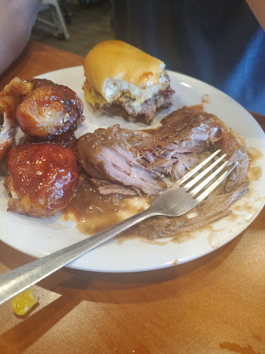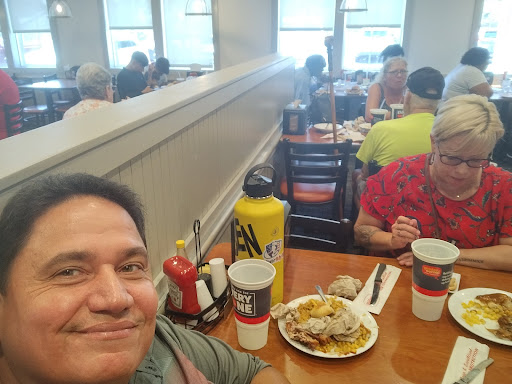 Read moreFirst I want to say that they WERE extremely busy. Nonetheless, apparently they don't have enough staff for cleaning and restocking dishes. Dishes were all sopping wet, whether plate, bowl or silverware. Found many of each of them still dirty and unusable. Besides this, they place plates and bowls in the front under the food. People reaching over to get the food continue to drop food on the dishes. This dirtiness just made me find this place not suitable. The woman, Leslie, who serviced us for drinks, etc was pleasant and efficient. The food was ok but nothing to write home about. My brother got some fried shrimp which looked nice and golden brown. He said they were good. His fried chicken looked overcooked to me. It was somewhat dried out. Maybe sat under a heat lamp too long. My sister ate a nice salad. Unfortunately I don't remember what else she had. I had some salad that was good. It tasted fresh. Also some good chicken noodle soup. I noticed that the broccoli cheddar soup was dried out on the top. It needed replacement. I also had some creamy delicious Mac and cheese, a nice creamy good green bean casserole and a piece of steak. Steak was not bad for a buffet. I had a hot fudge sundae for dessert. It was good. I mostly rated this place 3 stars because of the dirtiness. I was even afraid to go into the bathroom and see what that...