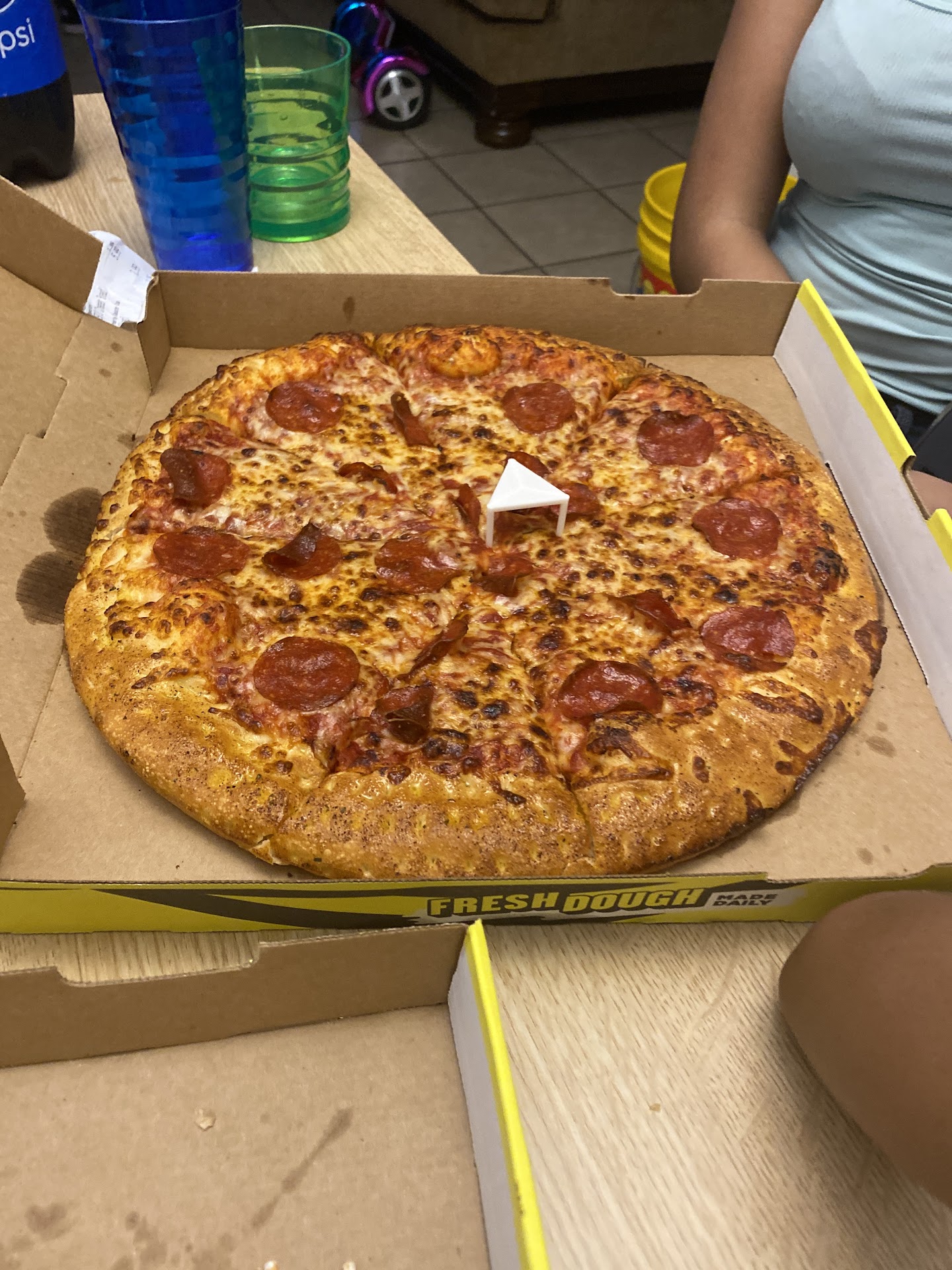 Tonight when I got home of course the pizza was not cut in squares. I was furious. I immediately called the store.