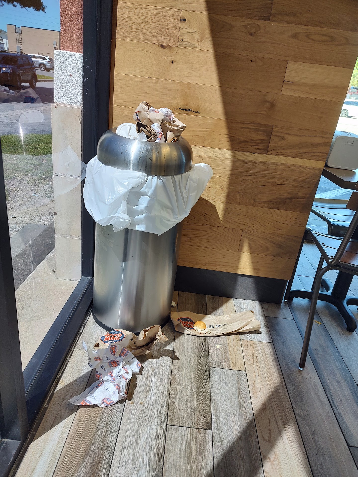 Read moreEverytime I walk into Jersey Mikes, something is wrong, looks gross, or a person is rude. All 3 things happened to me recently. Then I tried to give it another chance and it wasn't much better. The first night, a gentleman was helping my boyfriend and I with our sandwiches. Not sure if he was new but there were a pile of sandwiches to complete plus ours. I guess it was online orders. He sat there watching the other person do all the work and when he did work he was very slow. The other person even got on to him about working. He just made a side comment and continued working at snail pace. We waited over 10 minutes for a cold sandwich and no one in line but us. The lettuce looked horrible and so brown, tomatos looked mushy and discolored, and the counter had so much food on it from other sandwiches. The bacon was black and didn't look appetizing. The second time we went, the gentleman with the beard made our sandwiches. He was not very friendly and was short with us. The tomatoes still looked disgusting and the lettuce was still brown but not as much. I used the restroom and it definitely doesn't get checked regularly. The toilet paper was out too in both restrooms which I had to go tell the not-so-friendly employee that there was no toilet paper. This place needs better leadership. I tried to give it a second chance and still didn't satisfy. Ill take my money somewhere else to get a better sandwich. Unless you want food poisoning, I would...