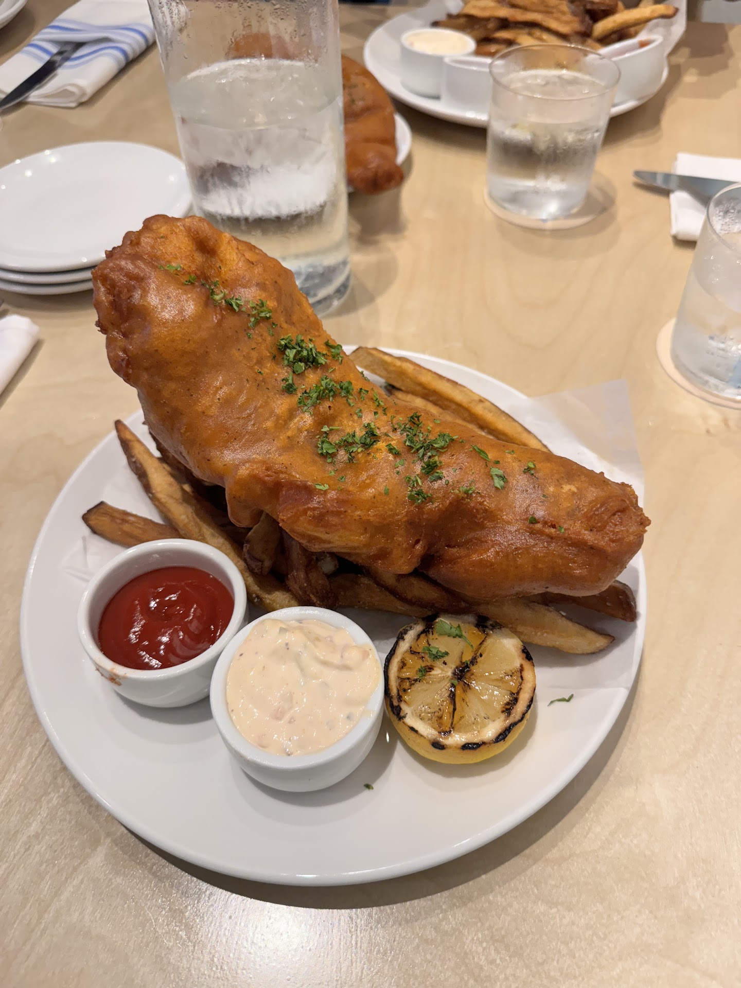 I ordered the Haddock sandwich with fries. The portions were generous and the fish was fresh and well-prepared. I also tried the Crab Rangoon and the dip was amazing! This plate is large enough to serve as an appetizer for four. Everything was so good that I made a bit of a glutton of myself.
