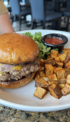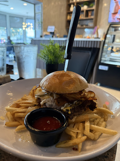 Read moreWalked in on a weekday for a quick bite during a slow period and yet somehow still took ages to get our food. Got a tiramisu latte and a lemon juice, both were tasty and gave us high hopes. I was hungry so i finished my garlic parmesan pasta (which I can only describe as penne covered in watery, bland cream)—but not hungry enough to eat the chicken. The seasoning was good but the chicken was tough/rubbery and had a weird taste, like the inside of a refrigerator. My husband asked for his burger medium well but was informed that it was a smash burger so it was all cooked the same. The burger arrived and was no where near a smash burger, had some pink in the center and the caramelized onions were barely transluscent—as you can see in the picture. The waitress was a gem tho, super sweet and helpful. I didnt have the heart to tell her the whole meal was a bust. Somehow, a burger, a pasta dish and two non refillable drinks was $60 after tip, and that’s after our kind waitress gave us a discount bc she saw I hadnt eaten the chicken. Overall, go literally anywhere else in this...