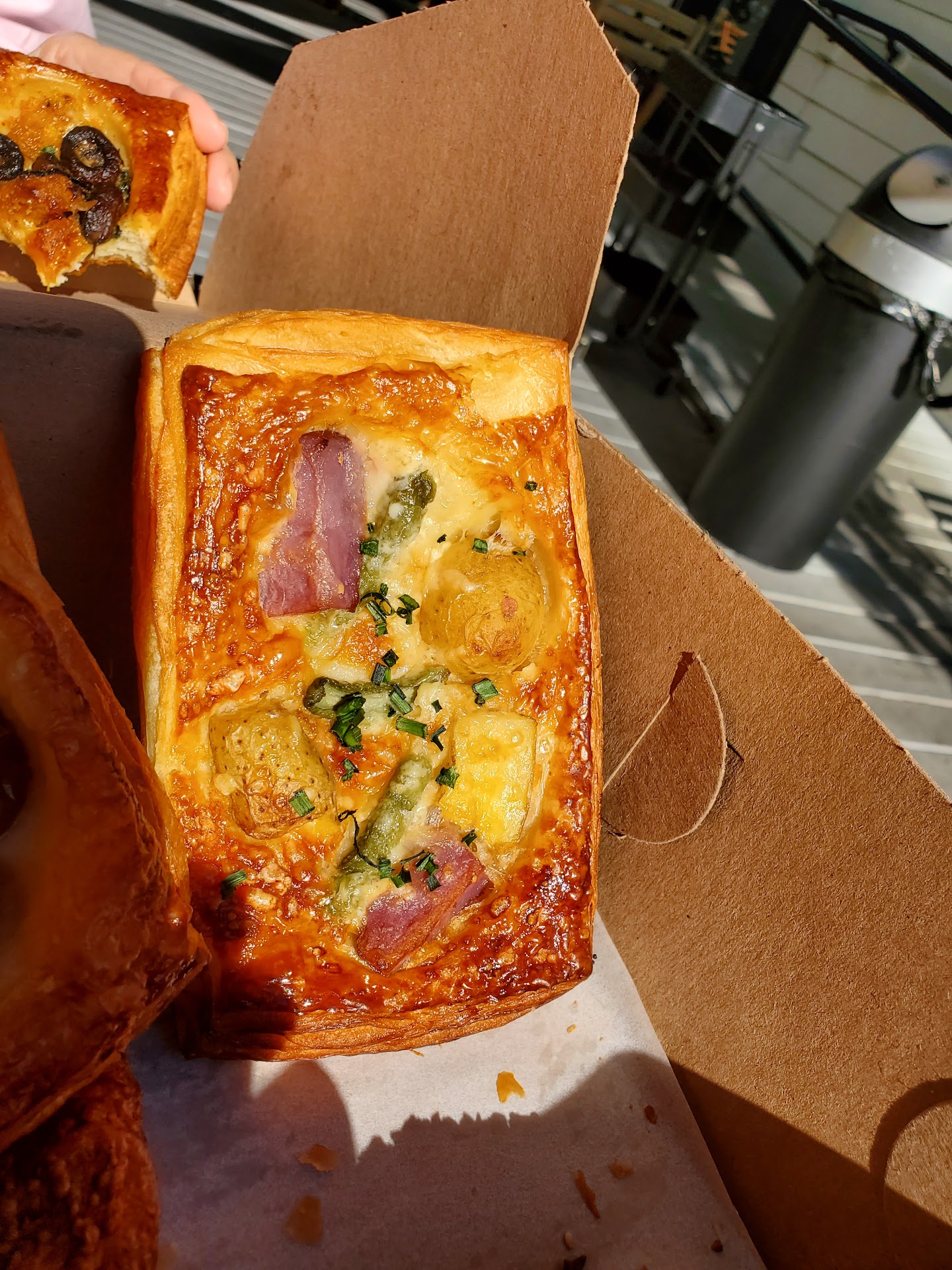 Their ordering function on the website is incredibly useful and is accurate in depicting what is in stock and what isn't. I recommend using this feature to place your order prior to you arriving in order to guarantee getting what you want. You can bet with a place as good as this that the most desired items will be sold first. With the savory croissant tarts, all of the elements involved are carefully thought out and treated appropriately. The mushroom tart for example has mushrooms that are perfectly cooked and a decent enough size to get a flavour pop, which is enhanced by the smoked cheddar that accompanies it. The Calabrian chili that's on the tomato tart is the perfect component to balance the earthiness of the tomato with the savouriness of the cheese and croissant.