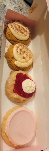 I really like the size of the cookies here for the price.. also i like the rotating weekly menu! that is great for someone like me who love sweets and always willing to try something new! this was my 1st time going. I tried the smores the lemon BlackBerry, pancake cookie And the lemon crinkle cookie out of the 4 I'd have to say the smores cookie was my favorite one it wasn't too sweet it was perfect.2nd place The lemon BlackBerry cookie I really like the flavor of the cookie with the icing the only thing I would change is the blackberries in the middle I could have done without those other than that it was perfect! the pancake cookie was absolutely way too sweet for me wouldn't order that again and the lemon crinkle cookie just needed more lemon!! I love lemon and it should have had more of it or maybe a lemon cream cheese frosting (hint 😉) also As always make sure you download the app and earn those rewards