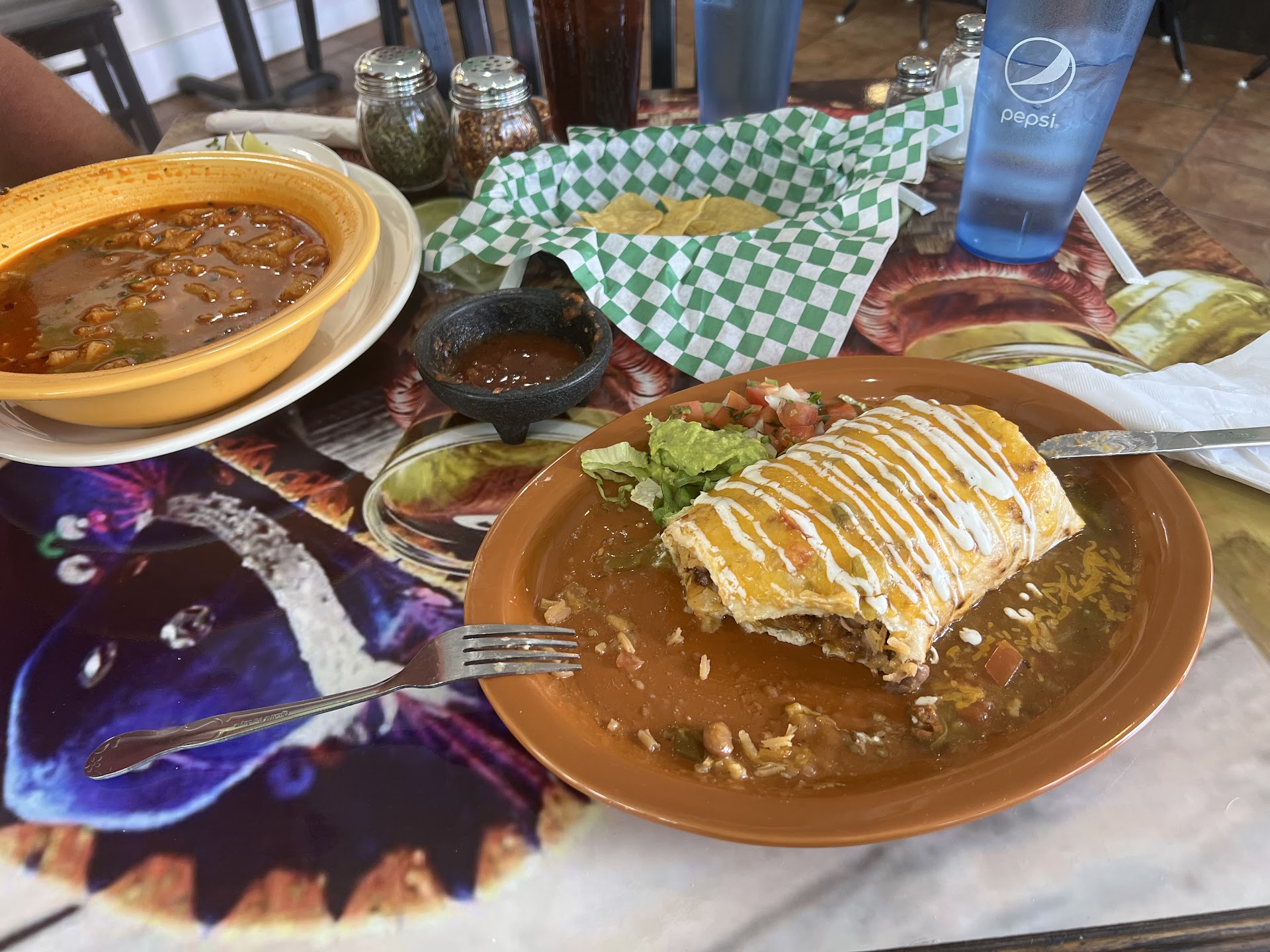 Ā Ā Ā Read moreMy husband and I decided to give this place a try last night. The outside patio eating was lovely. Surprising they blasted 70s dance music on the outdoor speakers which cracked me up. The patio had a big jenga and corn hole also. Seems like a good option for families. Inside the bar had two pool tables which seemed like a fun option too. I ordered the crispy chile rellenos and was surprised by the filling which was unlike any I have had. The chile was stuffed with a cream cheese and herb mix. Seemed similar to what you stuff bacon wrapped jalapeƱos with. Regardless, I enjoyed it. The green chile sauce that covered it was good also. My husband got the steak chimichanga which was huge - long and flatter than what weāve had before also, but he loved it. We ordered the jalapeƱo margaritas which were good although could have used an additional shot of tequila (but thatās my usual opinion at most places). The margaritas were really expensive that surprised me. $15-20 each, so we limited to trying just one. The server was friendly and attentive. Enjoyed the food and atmosphere. I...