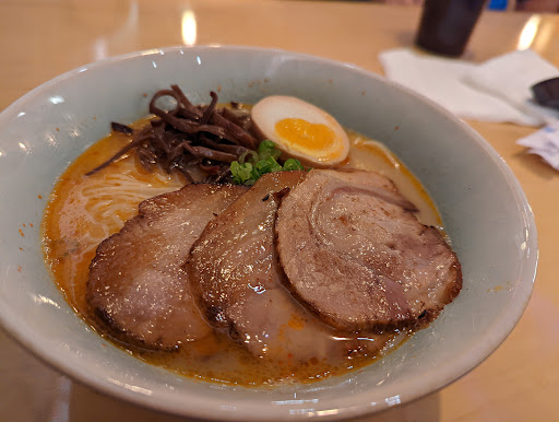 Came here on a Wednesday early evening with a couple friends. A friendly hostess allowed us to sit at the tables while we waited for our other friends to join us. We ordered at the counter not too far from our table and I went with the Red Tonkotsu Ramen for 13.50. After ordering, we were given glasses for our drinks (I just had water) to get at the fountain. Within about 10 minutes, our soups arrived. It was a good bowl with a good amount of al dente noodles, mushrooms, pork, and egg. The pork and egg were very flavorful and delicious. The broth had a hint of spices for a small kick, but still on the milder side. I did wish there was more pork to enjoy as there were only 3 pieces that I savored every bit.