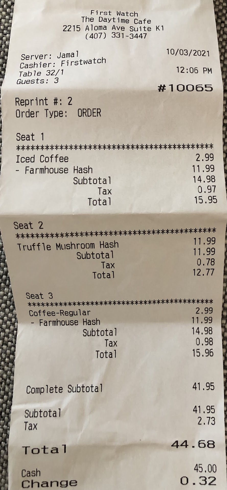 Ā Ā Ā Read moreThis is probably the worst First Watch in the Central Florida area which is surprising to say considering it is Winter Park. My family and I arrived today Sunday January 9th for brunch and were quoted a 20 minute wait, thankfully it was much faster than that. We were sat at a booth along the right side of the restaurant with a good view of the whole restaurant. That's when it went downhill from there. We were not greeted for fifteen minutes. A male server came by and told us that our waitress will be right with us. Another five minutes pass and a waitress comes up to us, tells us our waitress is too busy so she will be helping us out. Did not introduce herself, did not make any recommendations but asked us to place our orders. We sat there for so long so we were ready and knew what we wanted. The food came out pretty quickly however, no one came up to us after that again. We were waiting on refills, our eggs were extremely greasy and there was a hair in our little one's hot chocolate. No one came up to us. We ate our meal without drinks, a third server bussed our table and my mother requested a water, the server agreed and never came back. We sat there for a little while until I saw the waitress that took our order helping another table and I managed to catch her attention to ask for our check and she replied "I will let your server know" we were baffled and confused because at that point we did not have a server. The initial server that said "your waitress will be right with you guys" was our "server". When Christopher, our "server" dropped our check, my mother requested a water and again that water never arrived. The whole experience was enough to keep us away from this place. Worst service and...