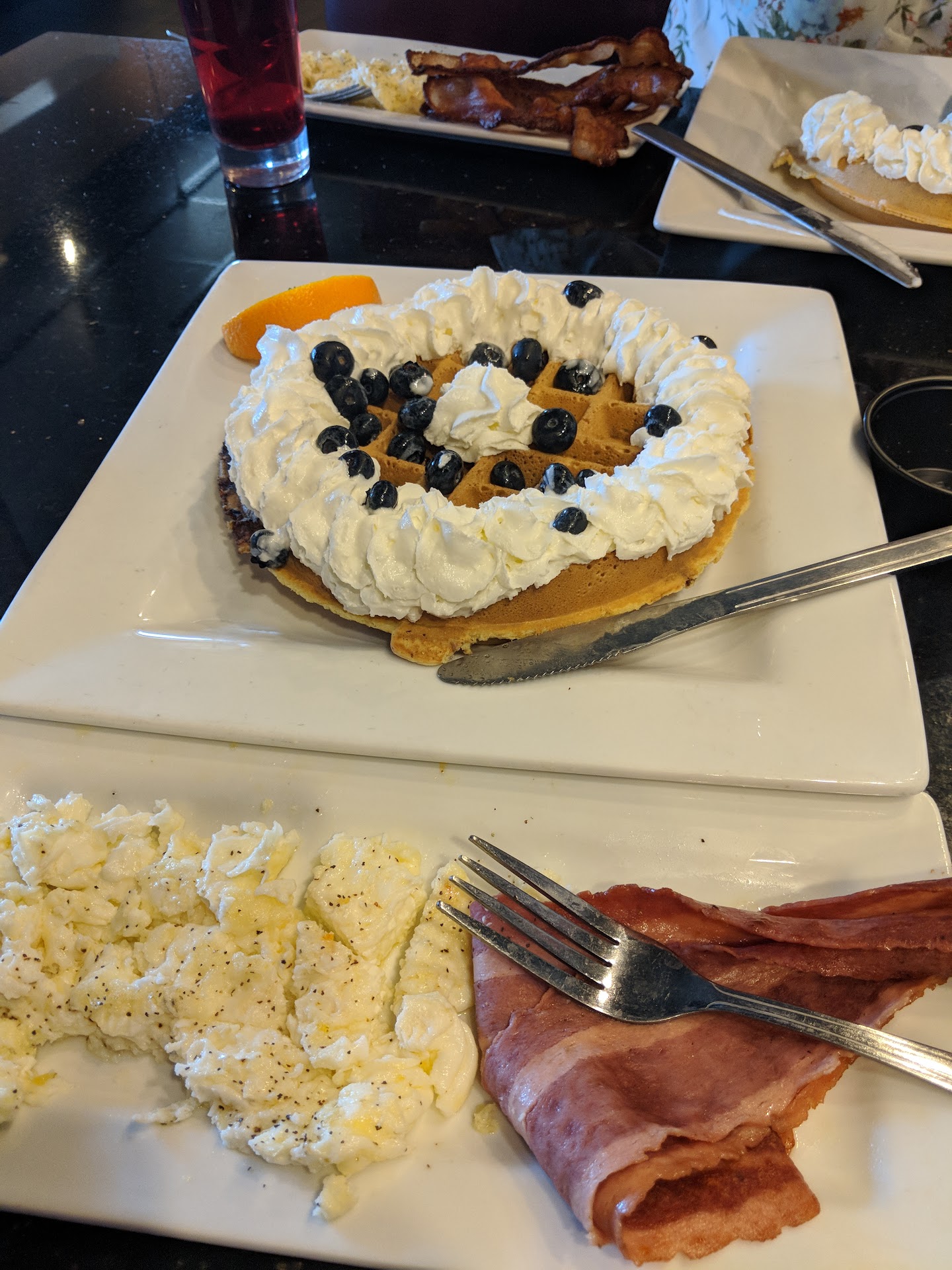 Read moreFirst I must admit that as a 56 year old man, I have eaten at many, many breakfast restaurants. So I have allot of experience to draw from. Keke's is a good place, but only good. Here is my opinion, the pancakes are so sense that I sent mine back today. It's possible that they were under cooked, but I also believe that the battery recipe need some tweaking. They should be able to ride, at least some what. I'm just saying. PS my daughter likes them. Next the home fries. First they are thick slices, like a thick potatoe chip. This doesn't seem right to me. Maybe the meat slicer should be used for, um meat... So what you get are a wimpy pile of soggy chips. Not good for me, sorry. Last, the omelets. Please purchase a few 9" frying pans. Use 3 eggs. Place the filling on your grill to warm first, then add a small amount of the filling to the scrambled eggs, a pinch only. Place the eggs into the pan on medium heat, allow to cook slightly, then add your filling, this will assure that the egg can hold the filling. Allow to cook further, then fold in half. If cheese is an ingredient, artfully add a small slice, or two to the top. Now at Keke's I believe you get eggs poured on the grill, cooked very thin. Then they add the filling and roll it up like a cigar, or burrito.