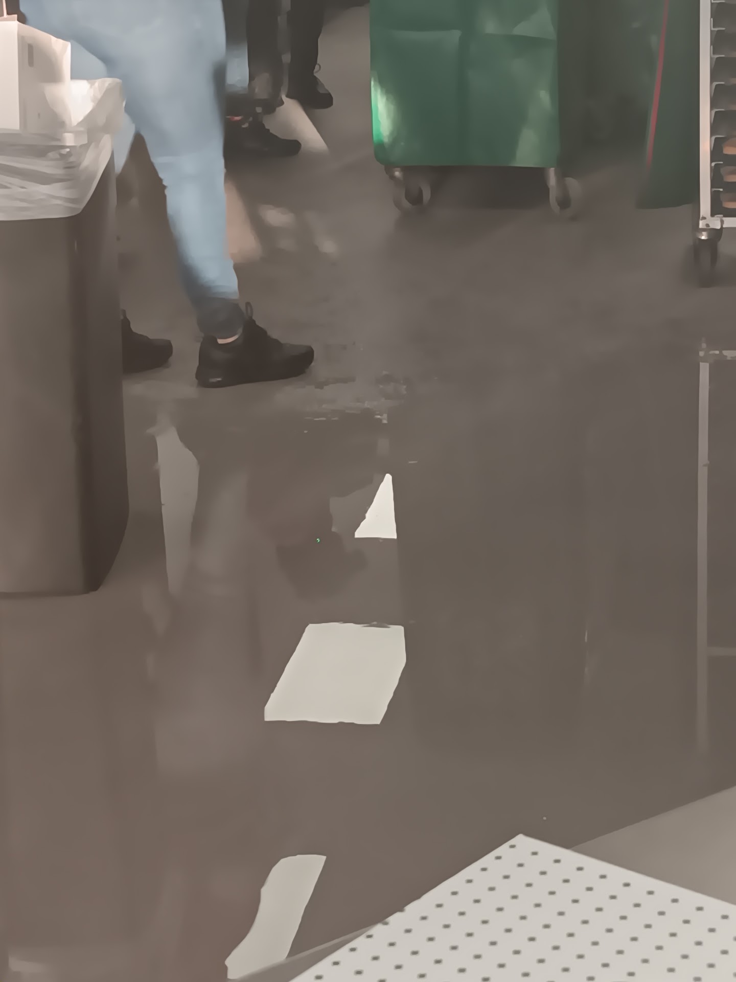 the large pool of standing water was about 12" x 10" wide and was wayyy to hard to miss when standing at the register.