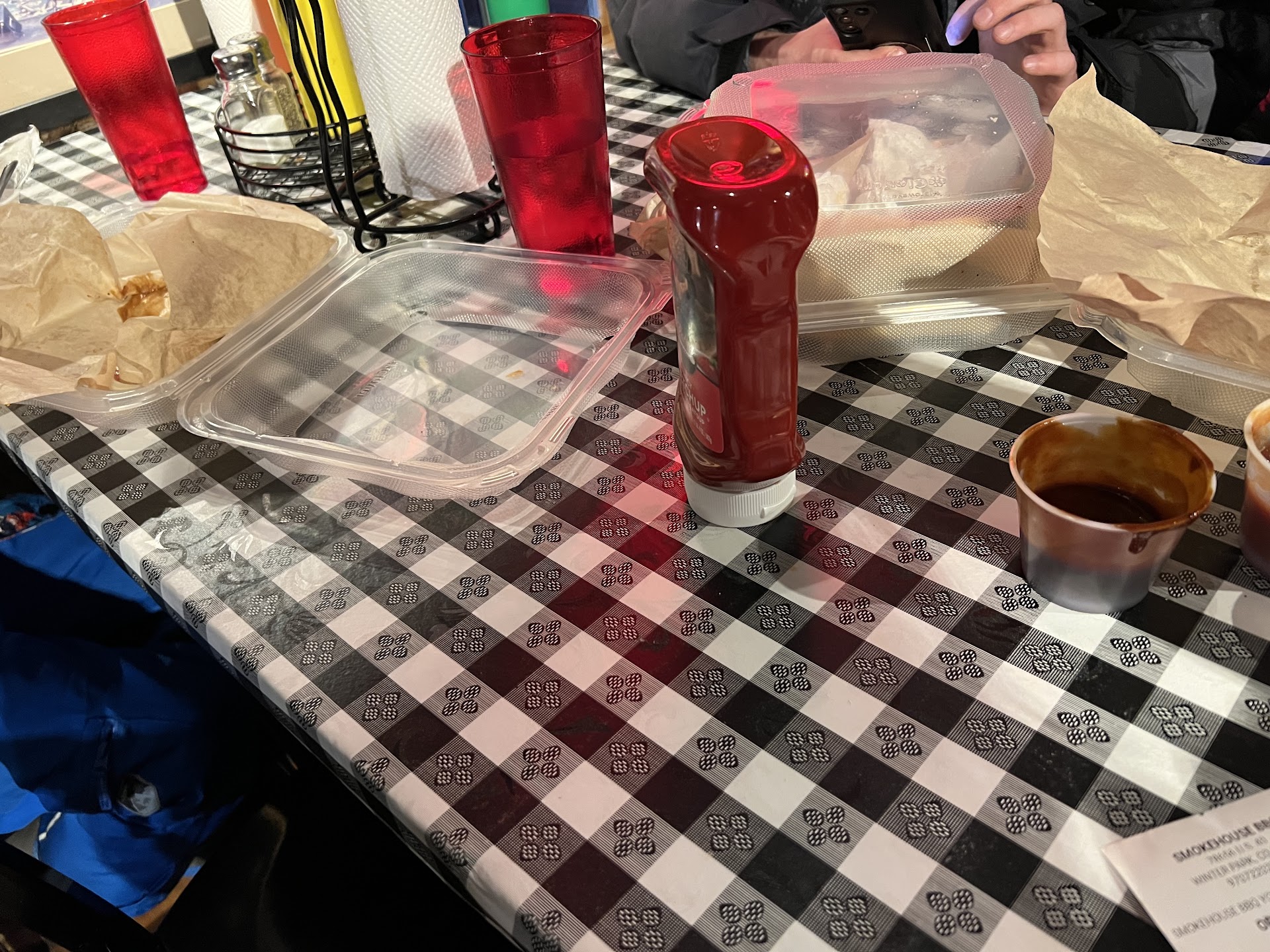 This place is not worth the money imo. Maybe Iām bias because it was far from southern bbq. Me and my bf went here for lunch and as soon as you walk in the door you order from the counter, it came out to around 50 dollars for 2 small portions plus a tip of 10 plus dollars. We go sit in the dining room and I realize itās basically a self serve. There were signs up stating that they were short staffed and we would have to clean our own table and we would have to go back to the counter if we needed anything. I normally have no problem doing that, but it should have been stated at the counter before we were forced to give a tip. Itās like tipping a McDonaldās worker 10 dollars for doing nothing ,but taking your order. They did bring the food to the table, but that it. Nobody asked if we needed anything thing the staff just kinda stood around. It looked like there was more than enough staff there to accommodate guests. The brisket was dry af, the wings tasted like dirty smoke, and the sodas in the cooler were not cold. I watched other guests walk in and have to wait on the girl at the counter while she just walked around the back. The point of going to a sit down restaurant is to be able to sit down and enjoy the meal, this was not the case here. Absolutely horrible way to run a restaurant and I can see why the parking lot was empty and everywhere else was packed. The only thing good here was the pickles...