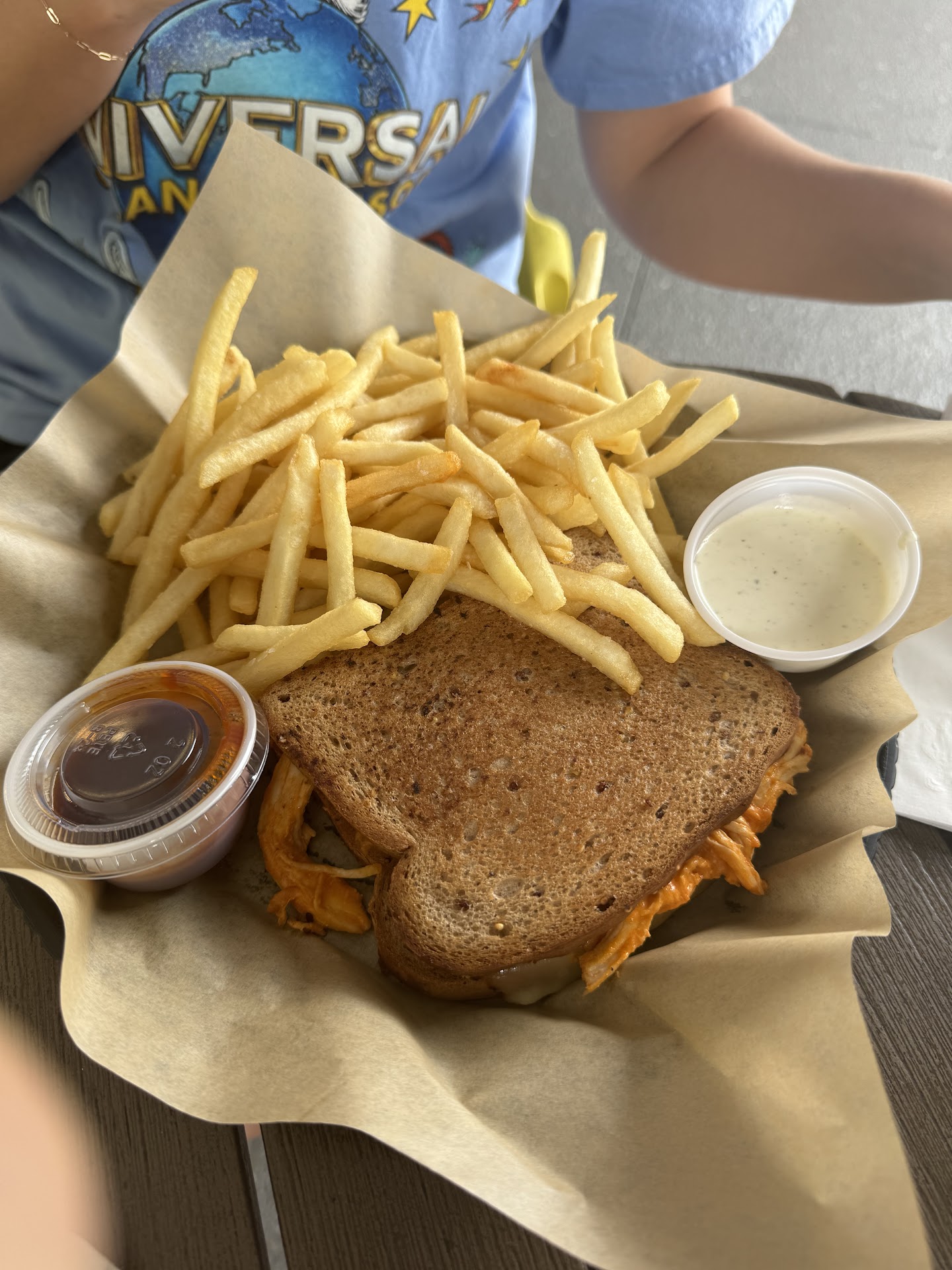 My wife got the buffalo chicken grilled cheese and she really loved it. They did a separate thing of fries for her as well to keep them away from gluten as much as possible in grilled cheese restaurant.