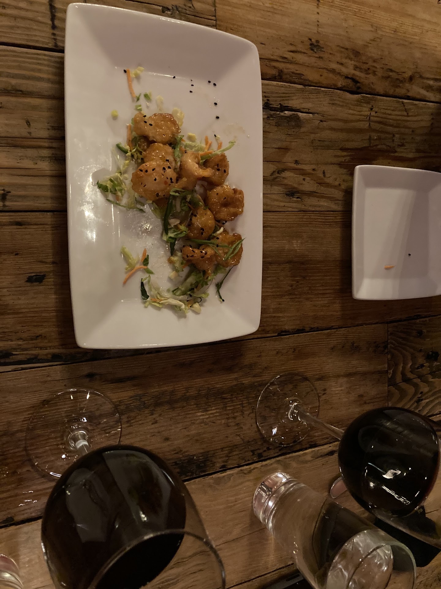 Pleasantly surprised with the food (service was great as expected)! We tried Vertical Bistro because I thought I saw spaghetti squash somewhere online, but I was wrong. They did have a squash risotto; however we decided to share the TUNA TARTARE || FIRECRACKER SHRIMP || BEEF TENDERLOIN MEDALLIONS (9oz). We each decided to drink one glass of red ALTA VISTA MALBEC and LAGONE SUPER TUSCAN. The wines were both acidic and tart and came fast so Iām guessing it was from an open bottle but we arenāt professionals so maybe our taste was off. Super Tuscan was less acidic and pairing them with slightly spicy food (firecracker shrimp) helped mellow out the wine and the food/drink complimented each other.