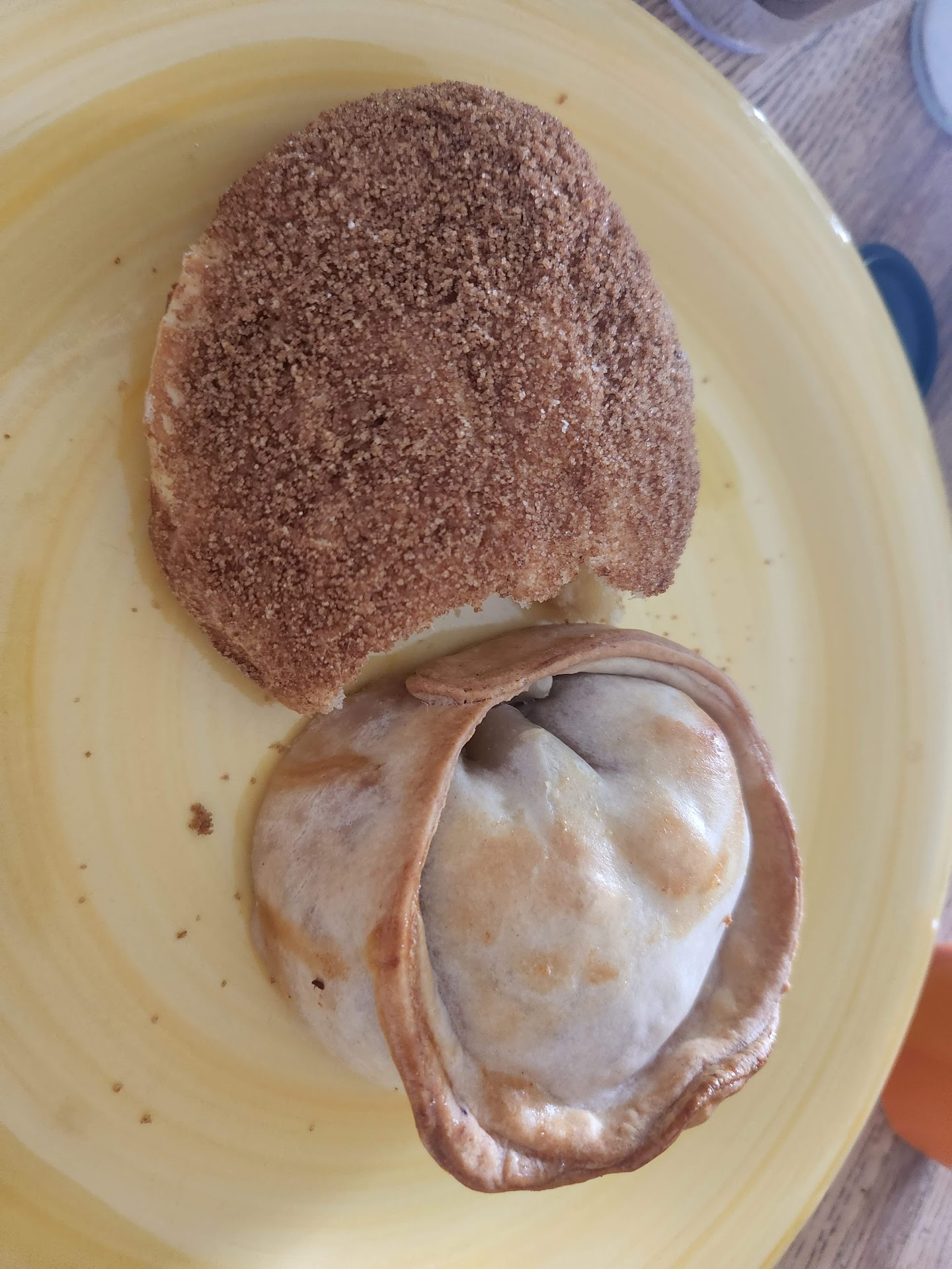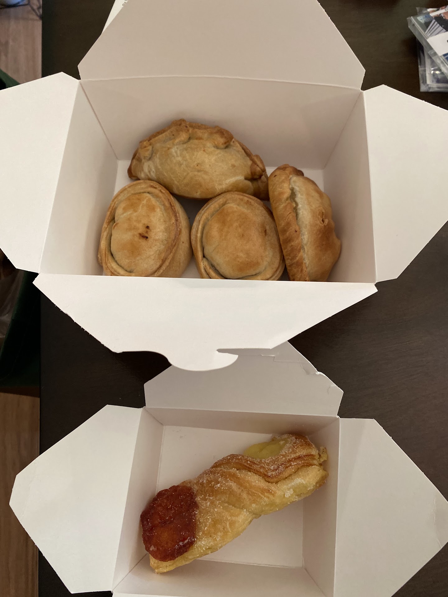 I got an assortment of sweet bread (did you know Argentina calls them facturas?) and a baked chicken empanada. The bread was delicious, tasty, fresh, fluffy and not overly sweet. I got some one stuffed with dulce de leche, one custard and peach, one custard and guava, one chocolate dusted and a regular media luna. The chicken empanada was still warm but if you like it hotter, they are happy to warm it up for you. They have an assortment and mine was filled with pulled chicken with a tomato sauce. Very tasty and filing.