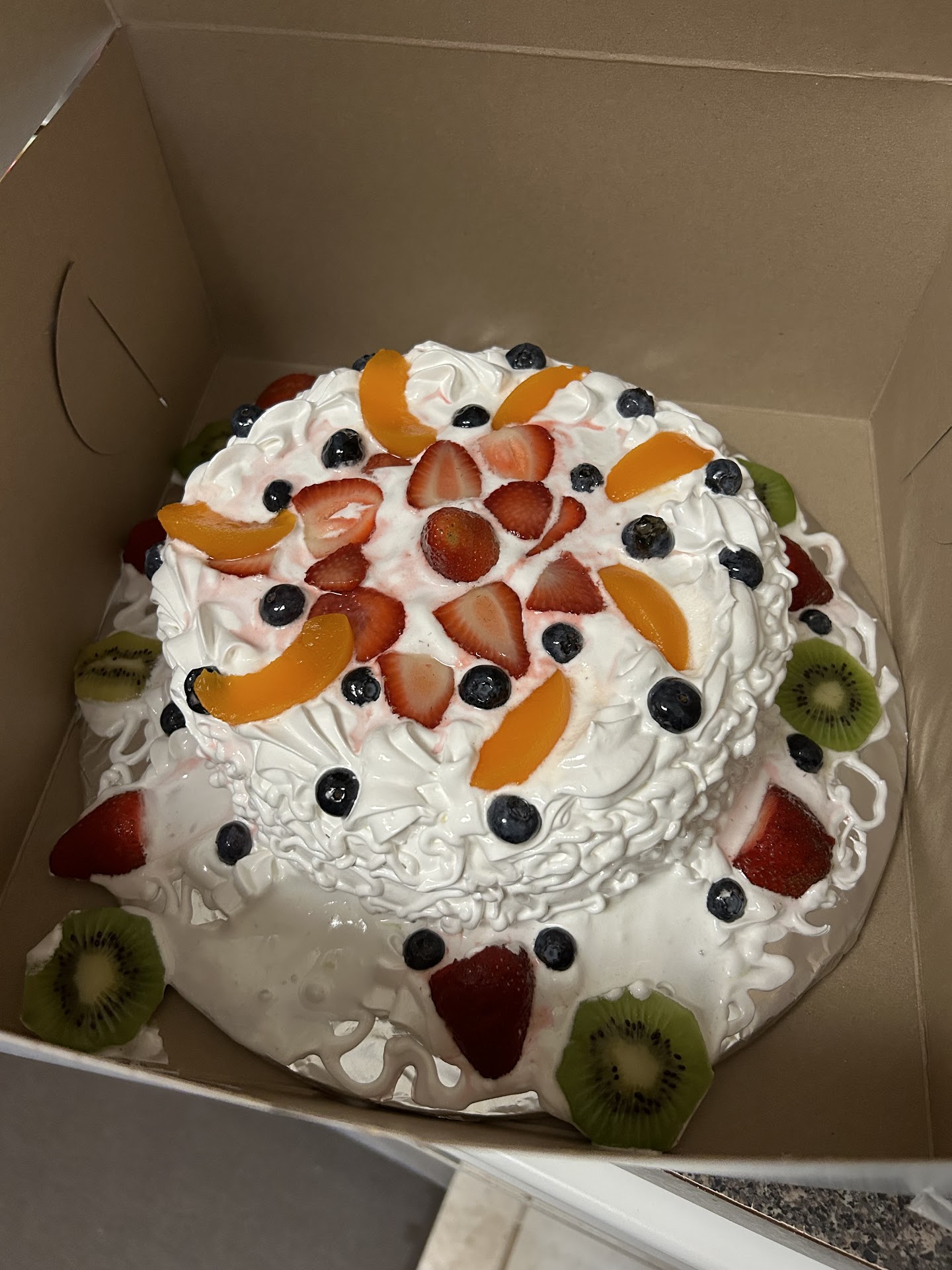 Ordered a birthday cake for 8-10ppl with dulce leche filling, and fruit on top.The baker recommended meringue icing. When I got there the box was tapped shut and I snuck a peak inside and looked okay, icing maybe a little runny so I asked her if she thinks it would be okay for a 25 min drive because it was very hot out. I would have gone to a gas station and gotten a styrofoam cooler and ice to keep the cake cool but she said it would be fine. After I got home, I took the tape off the sides and I was so disappointed to see that the icing melted and some of the fruit has run off the cake. The fruit is wet on top and to be honest the decoration was really disappointing. Not only are the slices very minimal but they are not cut well. A $40 cake, I should’ve just gone with Publix. My mom felt so bad because a friend of her recommended Clara’s bakery. Maybe this was a one off but if you live far and it’s hot out, I would not recommend a meringue cake with fruit. After I called her and told her, all she could say is “idk what to tell you, I’m sorry…” no offer for money back.