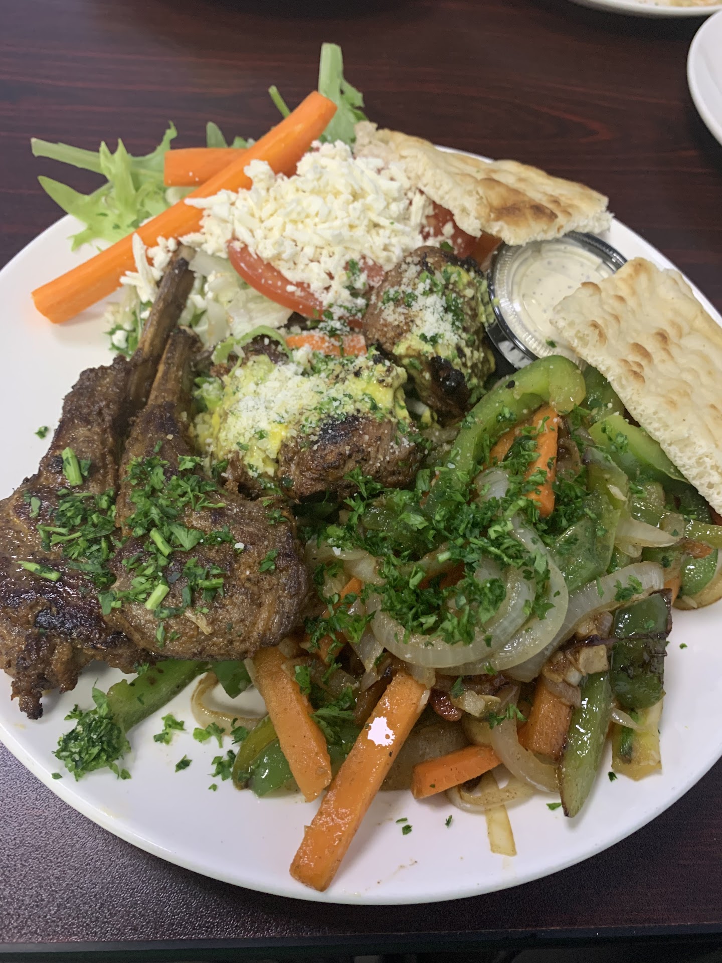 My entree was All Lamb Mix (Lamb Chops, Lamb Kabob and Gyro Meat). It comes with rice and vegetables but I swapped the rice for a salad. I asked for all the lamb to be cooked medium and it was absolutely amazing! Served with garlic sauce. The herb mix and marination was just right! My favorite of all 3 were the kabobs. Tender and so flavorful!