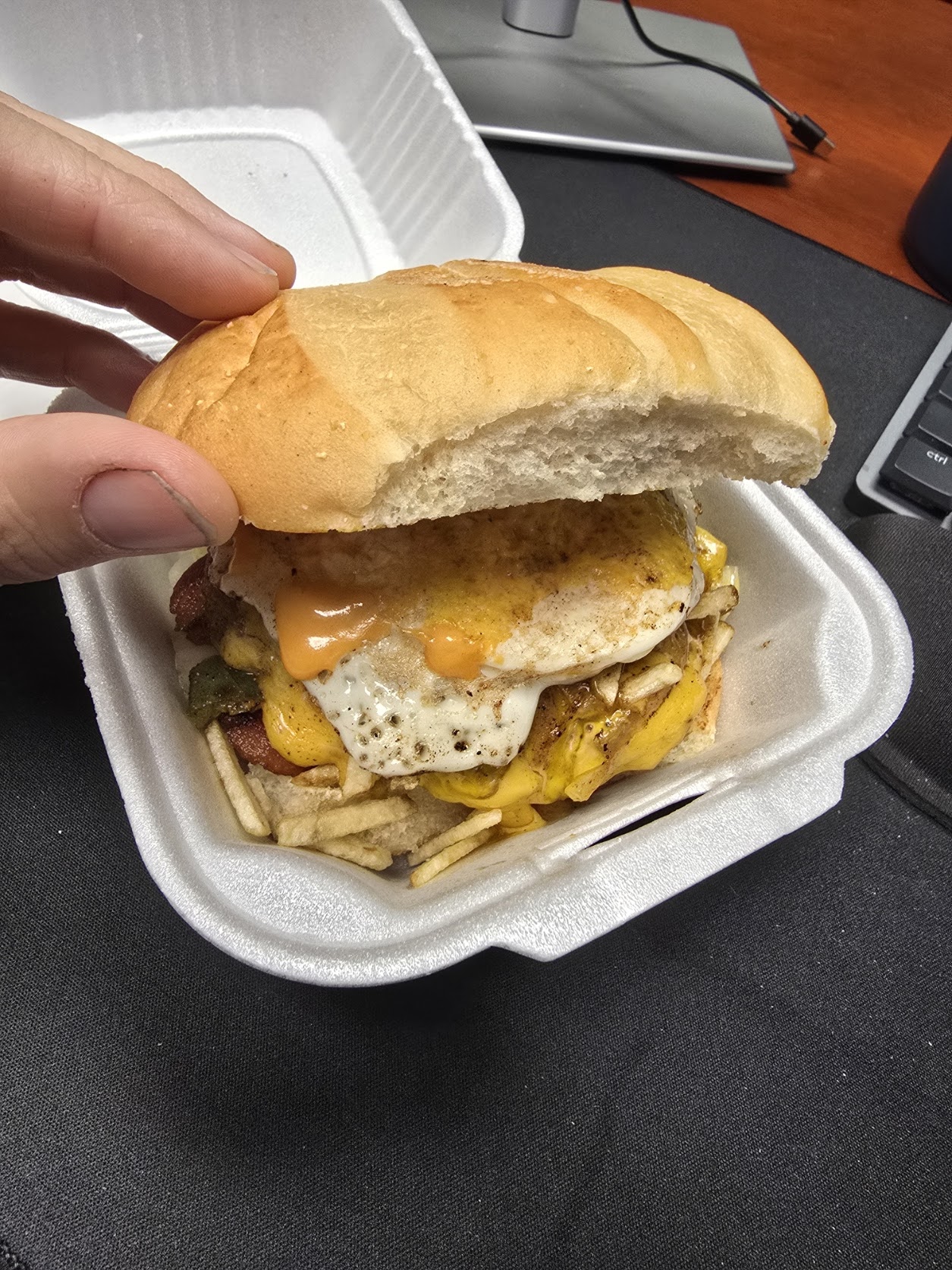 Read moreMunchie Shack serves up a big, loaded burger! I had the namesake Munchie Burger, and it was great. It had bacon, egg, American cheese, a single patty, diced peppers, lettuce, tomato, and potato sticks on a brioche bun with thousand island dressing. The burger was cooked well, and the bun was toasted nicely. They asked how I wanted the egg, so you can get it cooked through or a little runny (which is what I got) It was very tasty, and a little sloppy, but that's to be expected with a burger like this. This place is definitely a hidden gem in the back of a local convenience store in Winter Springs. Would...