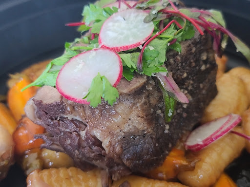 The food: The plates come out very pretty. The menu items could get more flavorful even though they are simple. That being said not bad tasting, just lacking seasoning. Food, Not mouth watering or delicious, just bland. Some things in the dishes don't go together, like sliced radishes over a creamy sauce that had the flavor and consistency of milk instead of a creamy bechemel sauce. I eat together all things on my plate so I hope they mix nicely on my tongue.