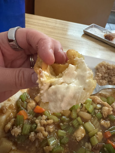 I ordered the cashew chicken, a side of fried rice, and crab rangoon. The cashew chicken was more minced garlic than anything else. The fried rice was short grain, almost like couscous - no vegetables (they likely are what wound up in the soup), and not a HINT of sesame oil. As far as the crab Rangoon goes - good luck finding any crab. If you love ground pepper however -...