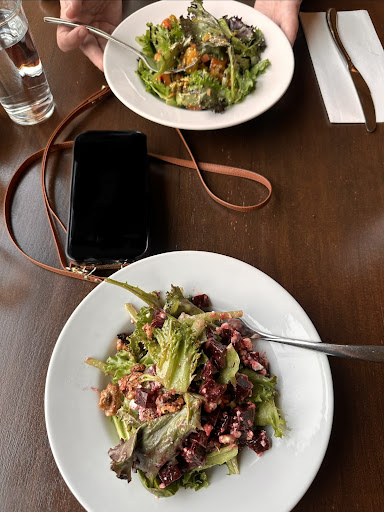 Food: absolutely just stellar. The mussels were perfect, filling, and seasoned with just the right amount of spice and savory wine broth. The salami and tomato’s were a nice touch and the bread to soak up all the broth was perfectly toasted. The tiramisu is HEAVENLY! An absolute must in your gastronomical journey here. I still am dreaming about it today. I had to finish every bite. The Rhubarb Basil cocktail was perfect-not too sweet, just tart enough and the basil was a nice subtle note.