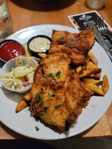 Read moreWe stopped in with a group of our friends for dinner and drinks. I had the fish and chips, and the hubby had their chicken parm sandwich. I wish I could say that my haddock filet was fresh caught off the coast of Maine, but sadly, it was not. Prebreaded, frozen fish is what I got, (at market price too, might I add) and it was on the small side portion wise, it was a 4 ounce filet from Sysco brand food's, or it could've been PFG. I know this cause I used to be in the industry for a long time. It was still tasty, though. My French fries were awesome, fresh hand cut, and a great portion too, all most like they were trying to make up for the lack luster size of the fish filet. Their coleslaw was bland and lacked any flavor at all. What a bummer! Our server was, well, just okay. She wasn't very attentive to our table. After everyone finished eating, we sat talking with dirty dishes stacked waiting to be cleared from the table, which did not happen until we left, but I witnessed other tables being cleared with customers still at the table chatting like we where. Either it was poor training of this particular server or was done intentionally, so we would leave sooner so the table could be turned over, I'm not sure but it is something they need to work on and be more diligent about. It's very rude and disrespectful. Remember, diningroom educate your tip will reflect how you treat your customers!!! You can't be more attentive to other patrons because they're regulars and snub people who aren't. Those people tip you, too. Overall, we were happy, but they need to implement some improvements, especially in the kitchen, less prefabbed foods that come frozen from a box, bag, or plastic container and more in-house fresh made with fresh local...