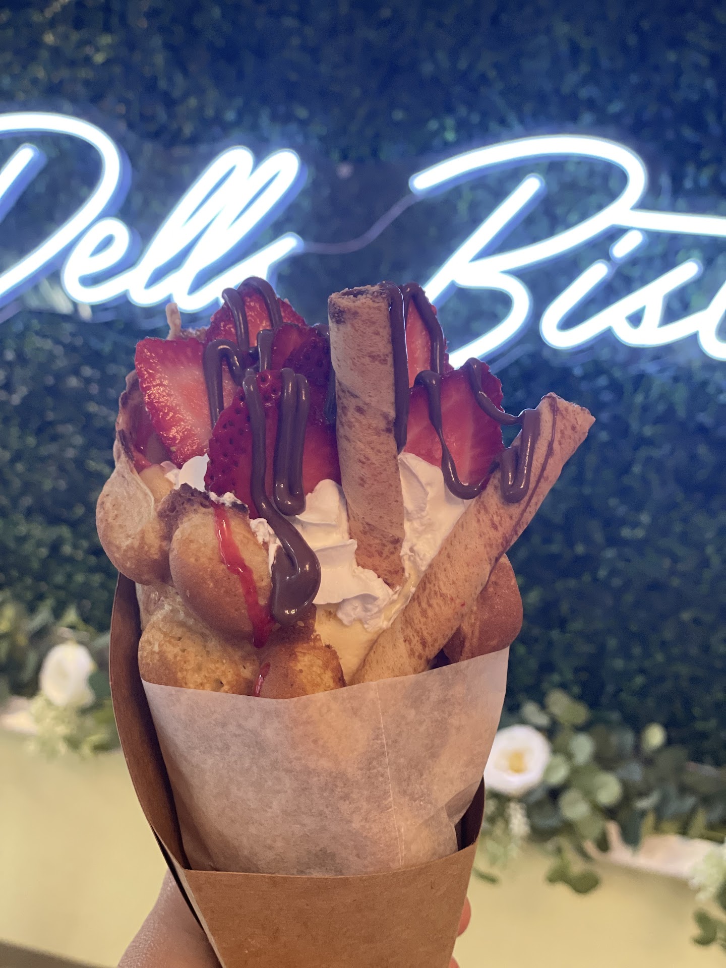 Its a very small place and while it was relatively clean looking, I wouldn't recommend eating here with any more than 4 people because there isn't much seating. The menu is very limited, which is fine but what we did get wasn't very good. We got 3 sandwiches, 2 BBQ Chicken and 1 Ham and Swiss. All of them were lukewarm at best. For the price, there was nothing special about the sandwiches. It was just the meat and the sauce and some cheese thrown on a plain hoagie roll for the BBQ Chicken. The BBQ sauce wasn't very flavorful and the chicken was gristly on mine. The ham and swiss was ok, same plain hoagie roll and meat and cheese and tomato, which was a nice addition, but since it was lukewarm to cold, it didn't taste that good. It probably would have been better if they just served it cold. For the prices, I would have expected at least Panera level of quality and this was far from that. One of our party got a bubble waffle and I thought it was good, but not worth...