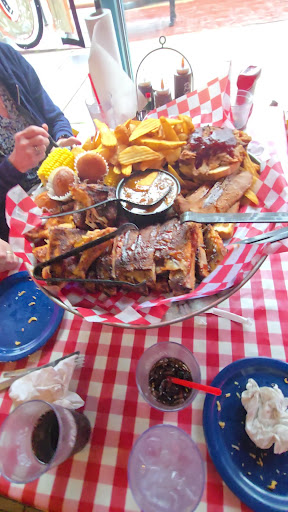 Our waiter is another story . After finally getting our drinks and order in, we didn't see him for almost 20 minutes and still had to call him over to get refills. Our food was finally brought out by other waitresses, and we had to flag him down when a young couple was brought to be seated upstairs. I ordered pick 2 meats dinner, with 2 sides. The pulled pork was good, but when I cut into brisket, it was all fat, 3pc's. of soft gooey fat , I flagged down waiter , showed him the problem, he seemed annoyed and brought me a piece of bread with pulled pork. I choose green beans and mashed potatoes and literally counted 7 string beans. For $18 I was very disappointed. After all that he automatically gave himself a $30 tip . Even though we had separate tickets, which if he had been worth $30, I'd have no problem, but when asked why he did that , he got an attitude and said because we sat together and walked away, by this point we were all furious and just wanted to get out, mind you nobody was happy with their order, but we were so hungry after long hot day, we just sucked it up. Prices don't match the quality or quantity of food and service....