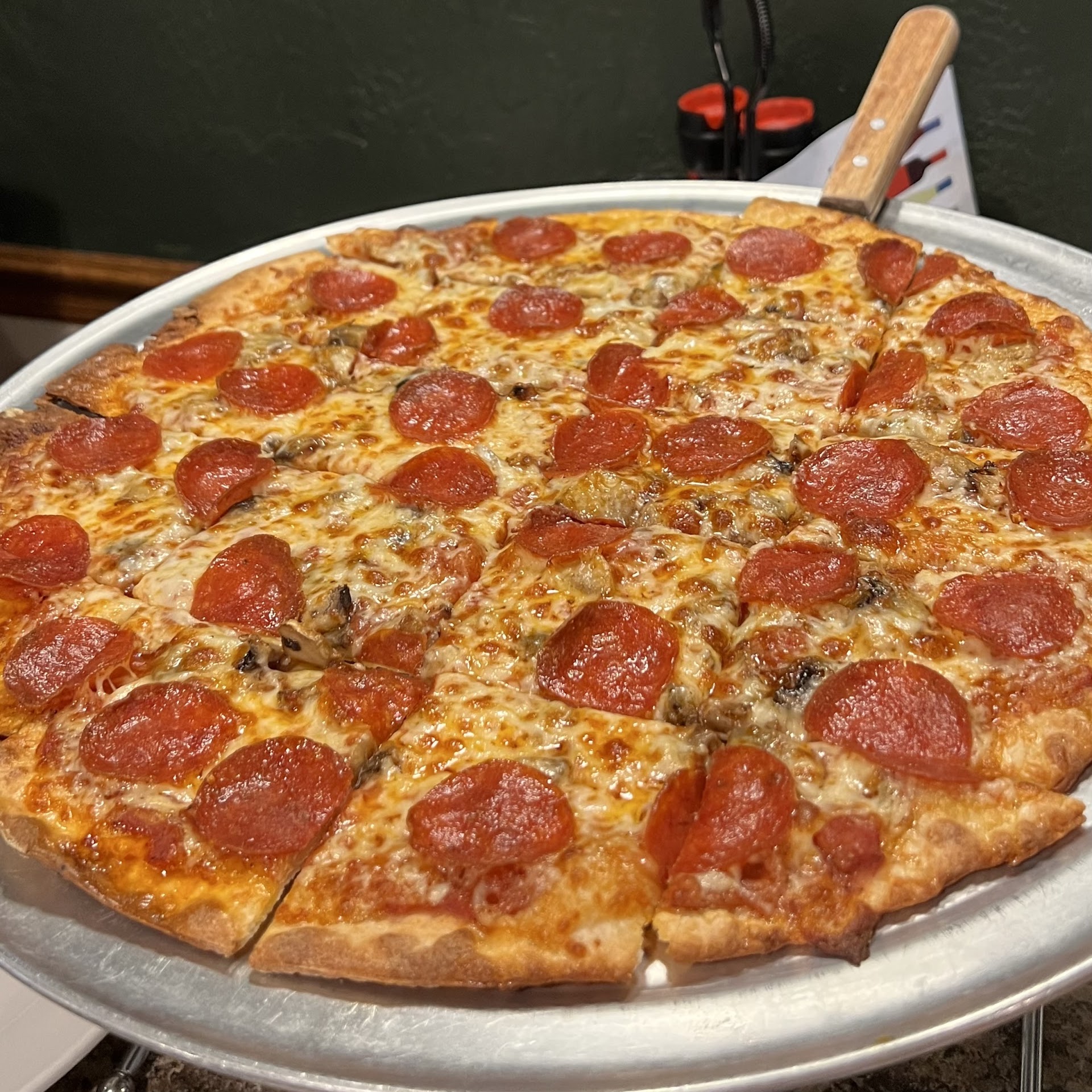 Read moreWasn't planning on stopping here. The other place was closed! SO GLAD IT WAS! We ordered a 12 inch pizza (mushroom, onion and sausage on hand tossed) to be 100% honest we were not expecting much. OMG!!! everything about the pizza was delicious! Crust was crispy but chewy, sauce was just the right amount and homemade, toppings were chunky and very favorable! The tiramisu was the perfect ending to the meal. There was a bit much cocoa on it but we just took a knife and dusted it off. We WILL be back to try some pasta, which while we were there all the other...