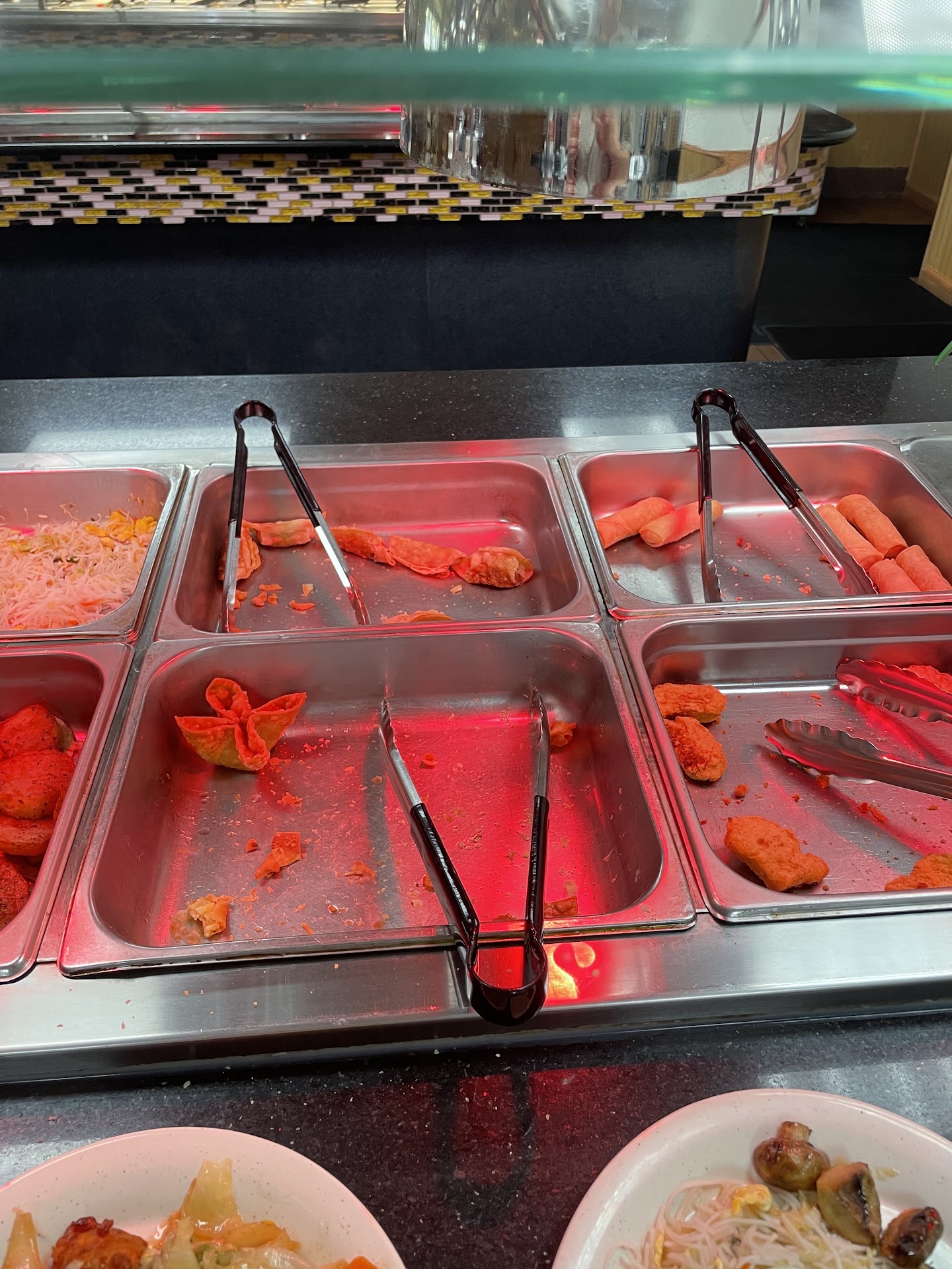 This particular night the business owner didn't look so happy. He was constantly pacing around in the front of the buffet and on the phone. About 10 minutes after we sat down at our table, another family came in and sat next to us. I saw them get up and fill some of their trays sat down and for some reason just walked out. Their food were untouched. We suspected they most of not liked the food from just seeing it. This prompted the business owner to come around and asked every customer again, even though we already told and request our drinks from the server when we were sitting, what their children's ages (including ours) were and what sort of drinks we ordered. He looked like he was annoyed when we were counting and trying to figure out how much and what beverages our family members had. While checking out a couple walked in and was standing behind us while we were paying and the business owner grunting hand signaled pointing them to the tables. A couple seconds later a family walks in and asked about the price per tray for take out, which the sever said it was $15 per tray, but the owner shouted twice at the customer that it was $15 per pound.