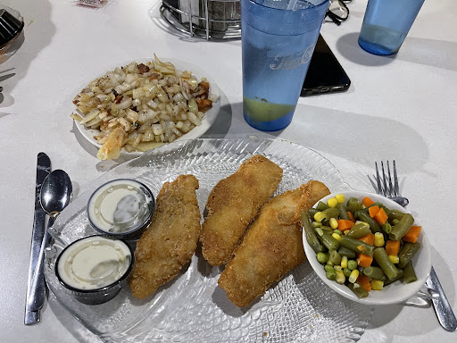 I was finally able to stop in on a Friday, to try their AYCE (All You Can Eat) Pollock battered Fish Fry for $13.99. I had never had pollock before, so I was especially curious about this. They also offer other fish choices on their menu. For a $1.99 upcharge, I ordered the sweet potato fries. It also came with soup or salad, of which I had a delicious cup of chicken dumpling soup. My fish platter arrived, with 4 of the largest butterfly filets I've ever seen; coleslaw and hot corn on the side. Everything was hot & fresh. I was only able to eat 1 piece of fish & some fries, but was able to get a box to take it home. It was all very delicious!