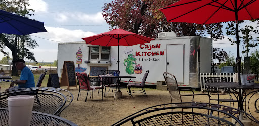Ok, great little outdoor Cajun seafood and BBQ eatery. It's all outdoors with a really nice covered eating area using large and small spools for tables and chairs.