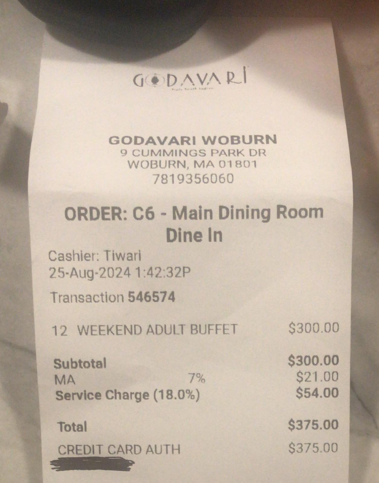 Read moreI recently had the pleasure of dining at Godavari in Woburn, and I must say it was a delightful experience. From the moment I walked in, I was greeted with warm hospitality and a welcoming ambiance.