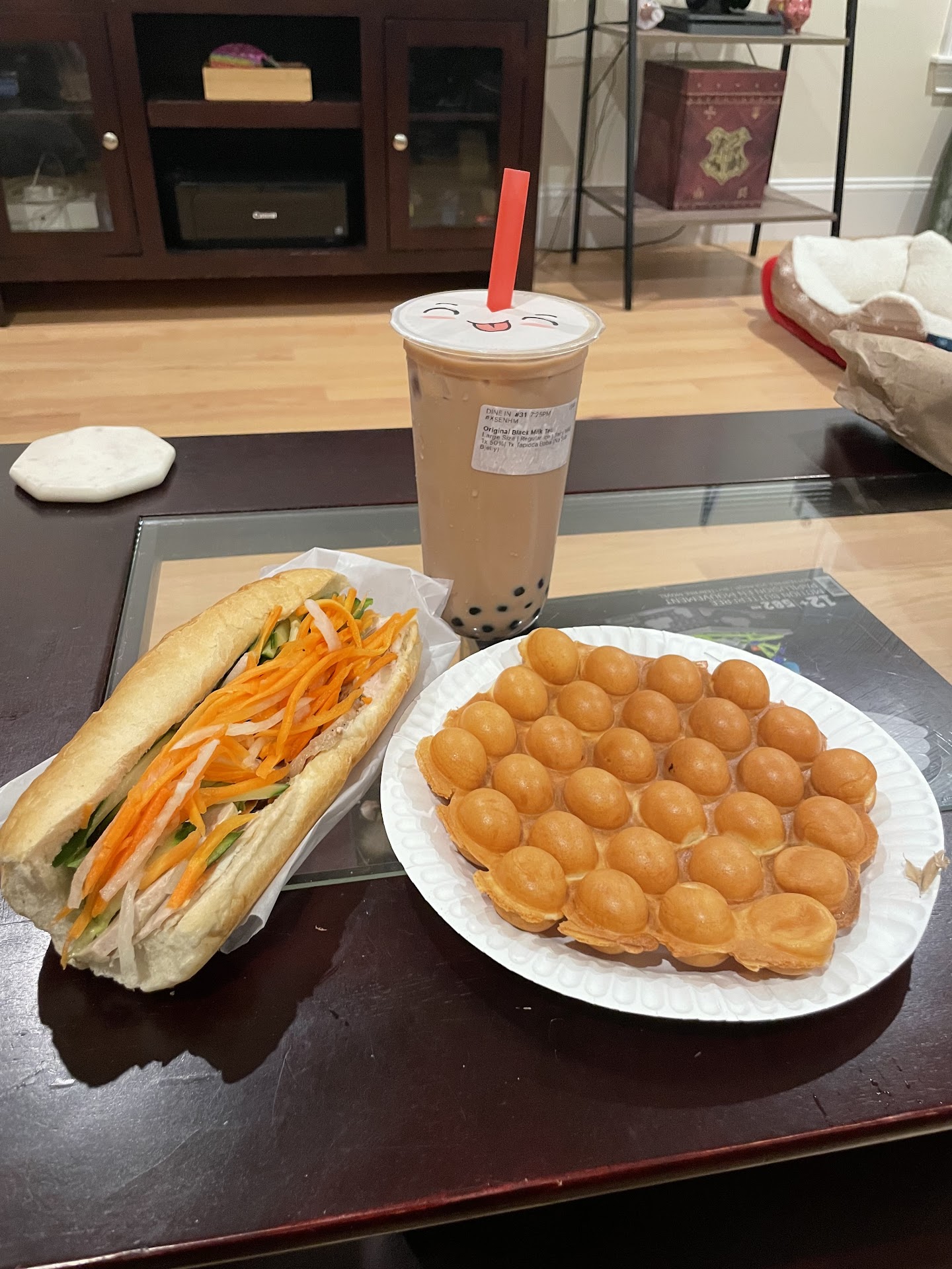 A great place for bubble tea!! I found this spot randomly after looking for bubble tea in the area, and of course I came for the bubble tea and ended up leaving with a cold cut bahn mi and original egg puff too.