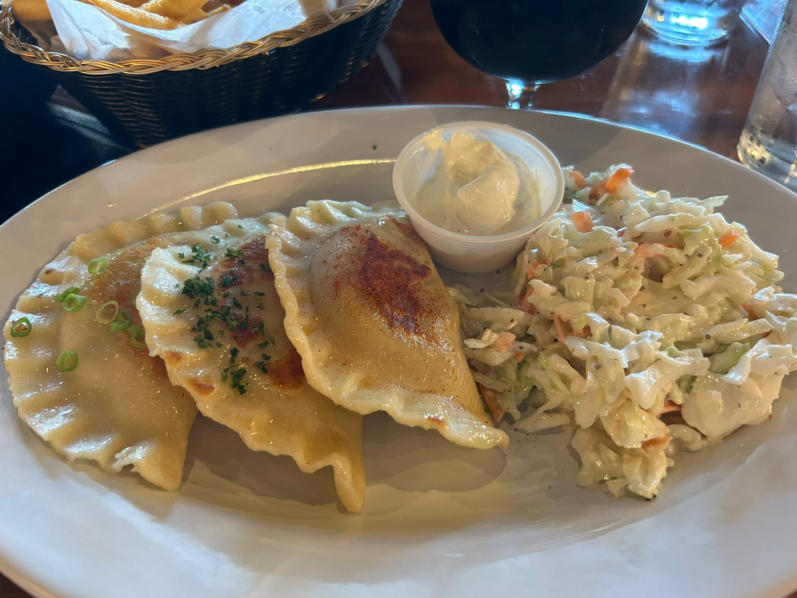 We started with the pierogis and got one of each. The classic was a very well done standard pierogi with a really nice pillowy potato filling and the dough was cooked perfectly. The second was an elote pierogi and that was super good as well. Great corn flavor and a bit of a kick! The third was beer can chicken and that one was really nice too. Tender chicken with a good seasoning. The last one was a spicy sausage that I didn’t try but my friend said had some heat and both she and my fiancé ate that one up quickly.