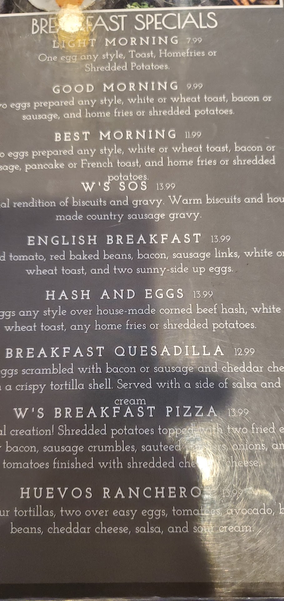 Read moreI'd seen the W on TV awhile back and they're were supposed to be exceptional. Well I didn't find anything exceptional about being charged close to 26$ for 2 BLT's. Then the juice, coffee and a cappuccino being just shy of 50$. The sandwich had 1 piece of bacon for, seriously 1 piece, 12.95$, sweet potato fries were 3$ I guess I didn't realize that they were more to swap out. So there was 6$. I could have gone to another well know place in the area and 3 of us could have EATEN a great breakfast for the same if not less. I was actually embarrassed and left before because my partner was adiment about not leaving a tip. And he Always tips Very Well. I felt bad for the waitress. But when you get such high reviews on a TV show you should at least continue to try living up to those standards. I'm sure there are regulars and have no problem with being served the minimum for more. Sorry but I am not impressed nor...