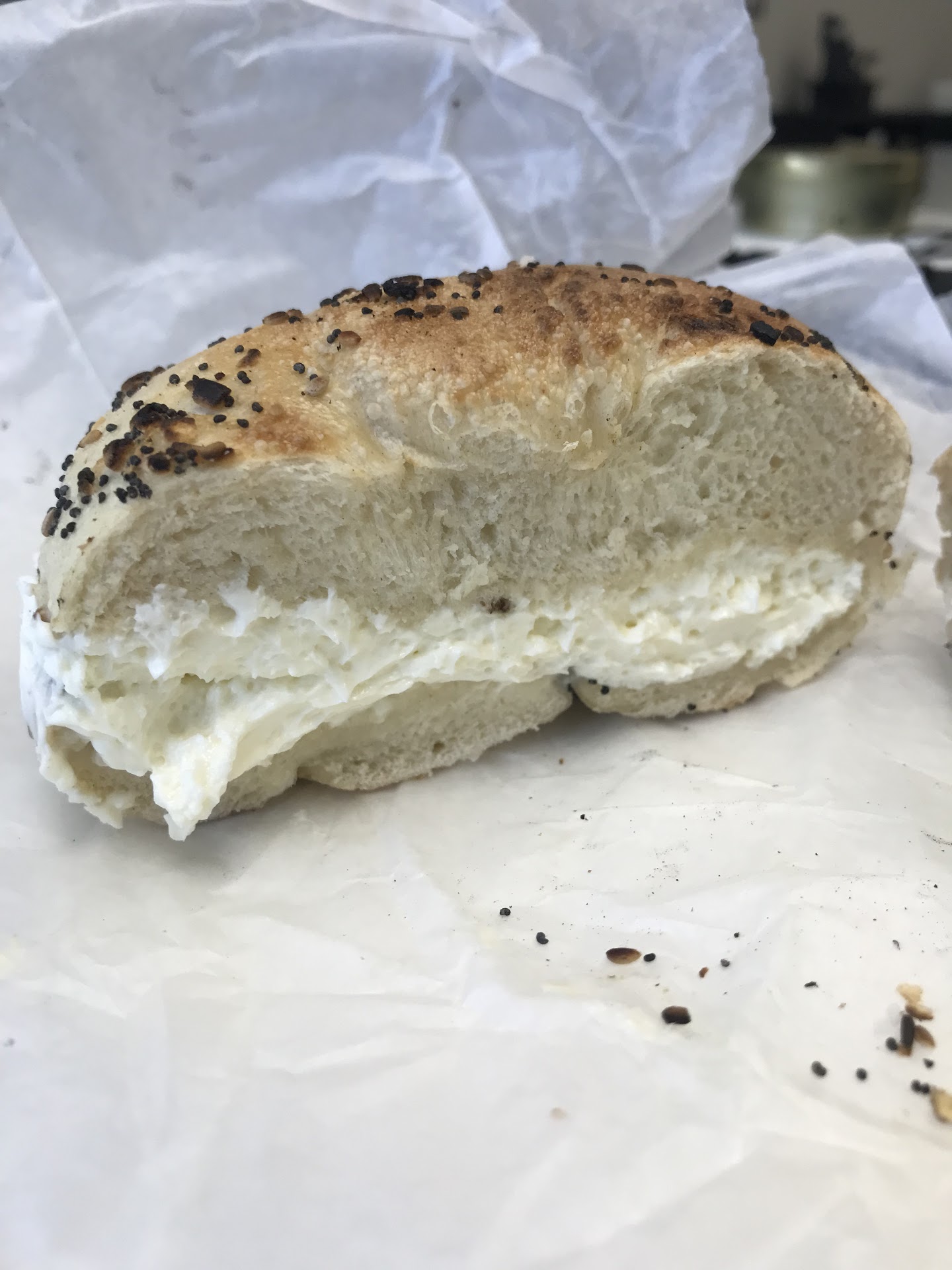 Read moreLovely family owned business. Been to Wolcott Bagel several times and the service is always top-notch. I have had a bagel with cream cheese. The bagels are homemade, big, soft, and chewy. The cream cheese is also homemade with it's not too fluffy, but is light and tasty. They put a generous portion of cream cheese on the bagel (pictured) and cut it in half for easy eating. I also have had a scrambled egg and cheese sandwich which was just as good.