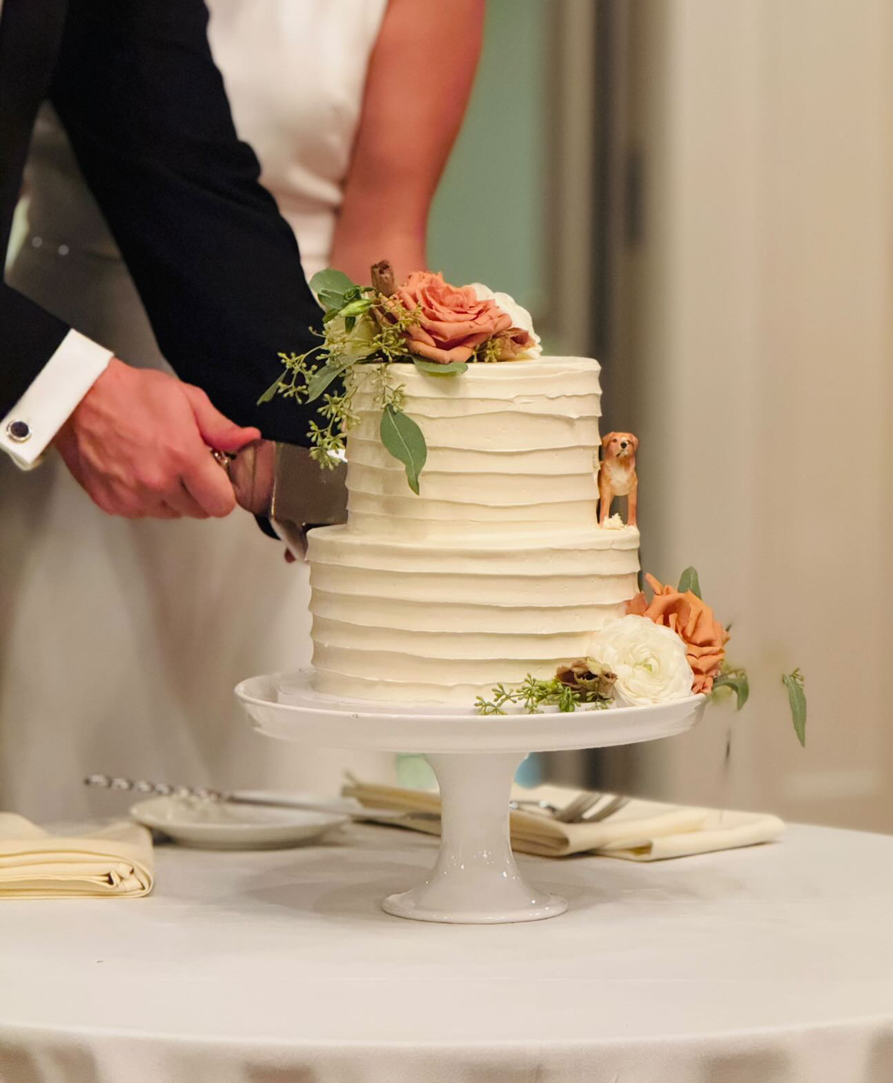Read moreI worked with Katie for my September wedding in Meredith, NH to have a simple two-tiered cake and dessert table. From our initial call she was very helpful and patient in walking us through all her different dessert options and pricing. Early on I let her know we were looking to incorporate a figurine of our dog from Etsy on the cake and sent her a reference photo for styling the placement. Let me tell you the squeal of absolute delight I made upon first seeing our cake! She NAILED it!! It was exactly what I was hoping for.