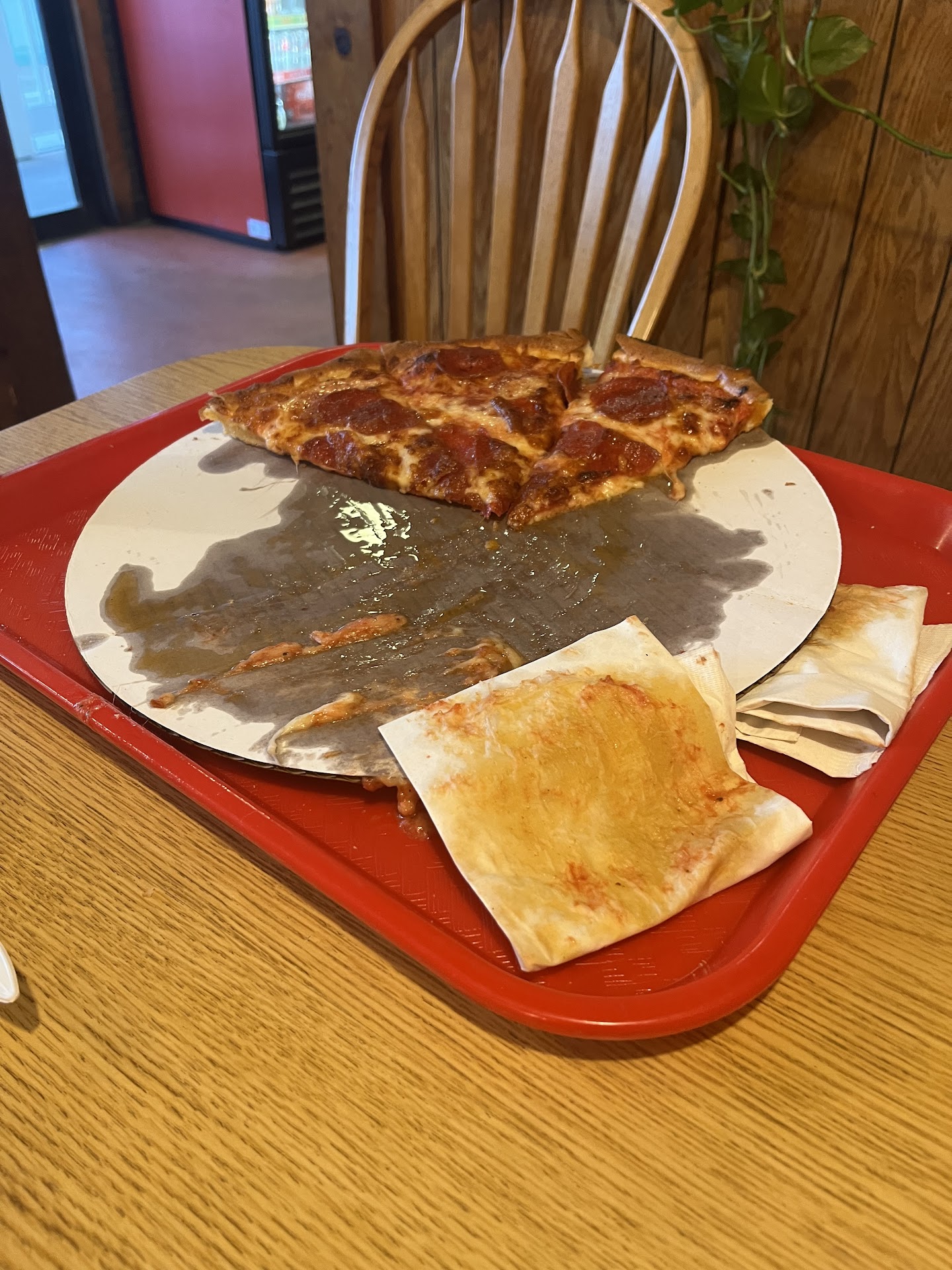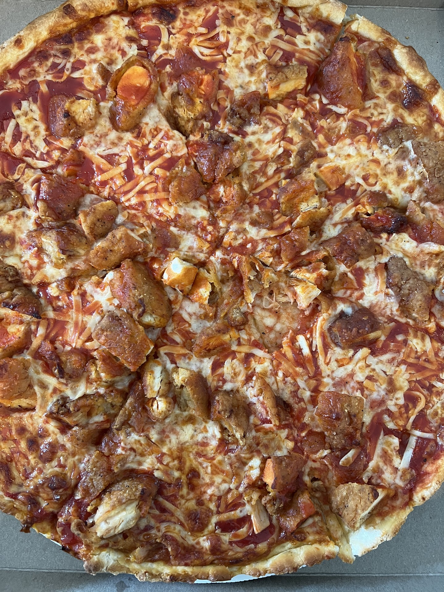 We went for dinner and got a large pepperoni and a small cheese pizza and 3 20 oz sodas. Spent about $35. The staff was friendly. The menu on the wall was hard to read due to lack of lighting. The counter under the menu was piled high with pizza boxes. The pizza tasted good (not too much sauce). The biggest issue we had was the amount of grease on the pizza. It was disgusting. One of the.female employees was smoking right outside the door then came in and went back to work. She may or may not have washed her hands. I don’t know. It was off putting. Bottom line: we won’t be going...