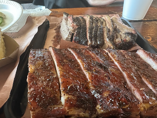 Ribs are full spare ribs vs commonly trimmed and are really nicely done and I hate pork. Evie Mae's let's the meat and smoke shine and doesn't over glaze their ribs. Nicely done.