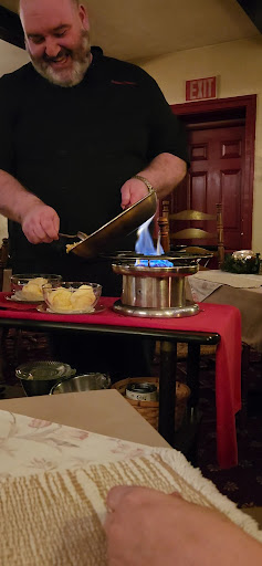 Great place to go to celebrate anniversary, birthday, romantic dinner. The menu can be a bit pricey but worth it. They have excellent steaks and seafood. My wife and I love there house specialties one is the skewer with fillet, shrimp and scallops. The other is called the house specialty which is fillet medallions with ham and cheese with an onion ring topped with a mushroom, burgundy gravy. Great fresh salads and homemade soups. They also have a great lunch buffet special changes daily. Menus available on line. Outstanding deserts from homemade pies, cakes to bread pudding. Full bar service. Service and atmosphere is outstanding. May I suggest visiting during Christmas season with the fireplace and decorations well worth it. The only thing that might be a negative for some is restrooms are on...