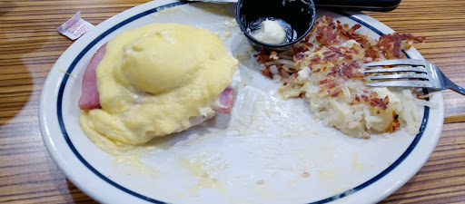 Read moreMy husband and I wanted to split a ham and cheese omelet, something we do periodically. I'm not sure if they're trying to conserve ingredients for financial reasons or the cook was just stingy with the ham and cheese. The omelet alot of egg with the smallest amount of cheese and a few small pieces of ham. The meal came with hashbrowns but the portion was half the size we are accustom to. This entre no longer comes with toast, so we paid $4.50 for 2 pieces of toast. The service was ok, until we tried to pay for our meal. We went up front thinking there would be a register to pay at. There was not, however, we handed a waitress the cash to pay for the meal. She took the cash back to wherever they take their cash to. I went to the car to wait while my husband waited for his change. Five minutes later, someone came out to ask my husband if he needed to be seated. Of course he explained to the individual that he was waiting for his change. This person went back to the back room, let the waitress know he was waiting for change. Several minutes later, the waitress came out with his change. Being tired of waiting, my husband took the change and went out to the car. When he counted the change, it was a dollar short. Ok, a dollar short is not a huge deal, but when you add up all these small/petty annoyances together, it makes for a very disappointing dining experience. We have eaten at IHOP's for years, when we travel we eat at IHOP's in other cities and have not been to another IHOP that is as disappointing as this location. If you have a choice, I would suggest finding another place to spend your hard...